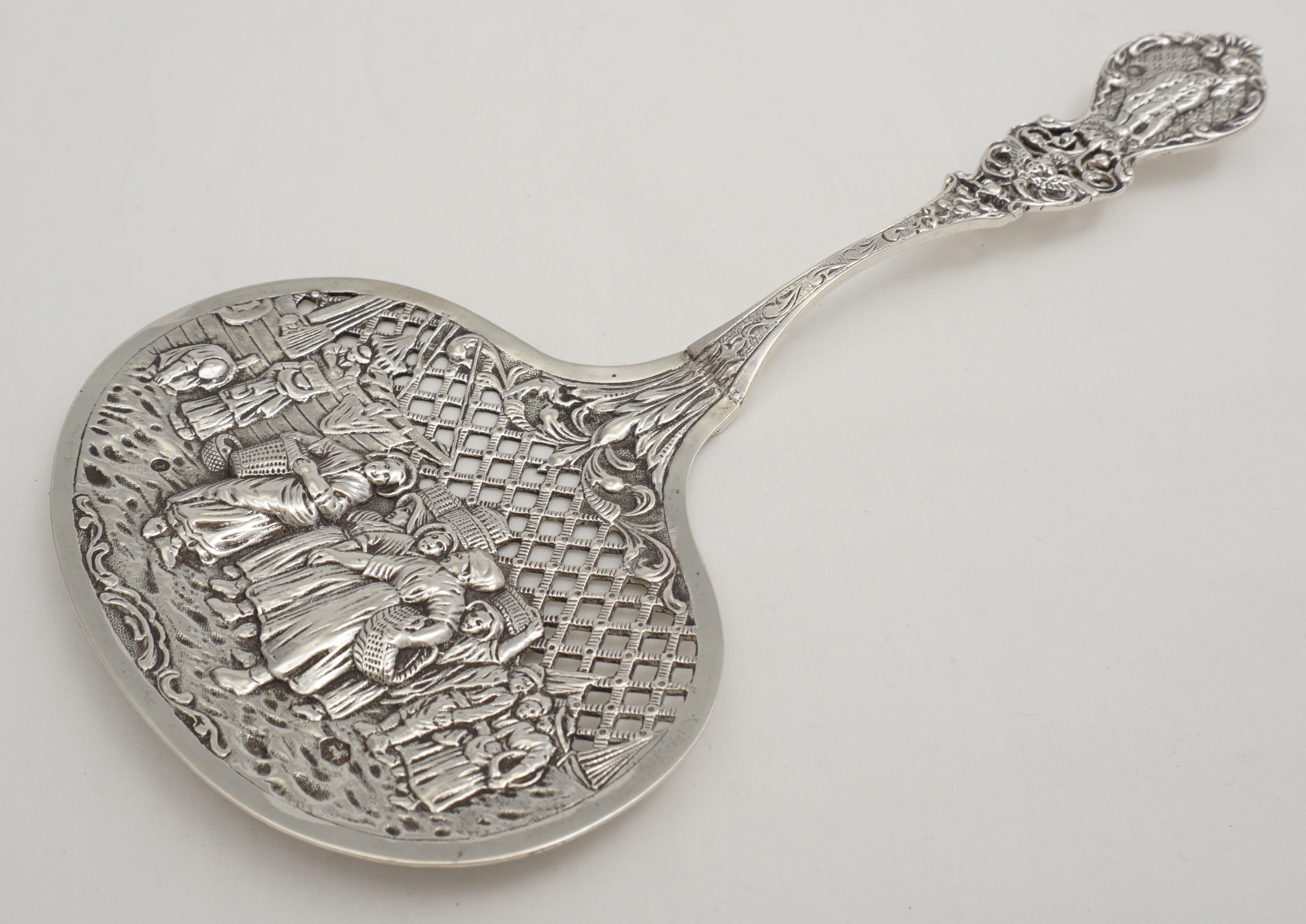 Netherlands solid silver server with pierced, engraved and embossed decoration.