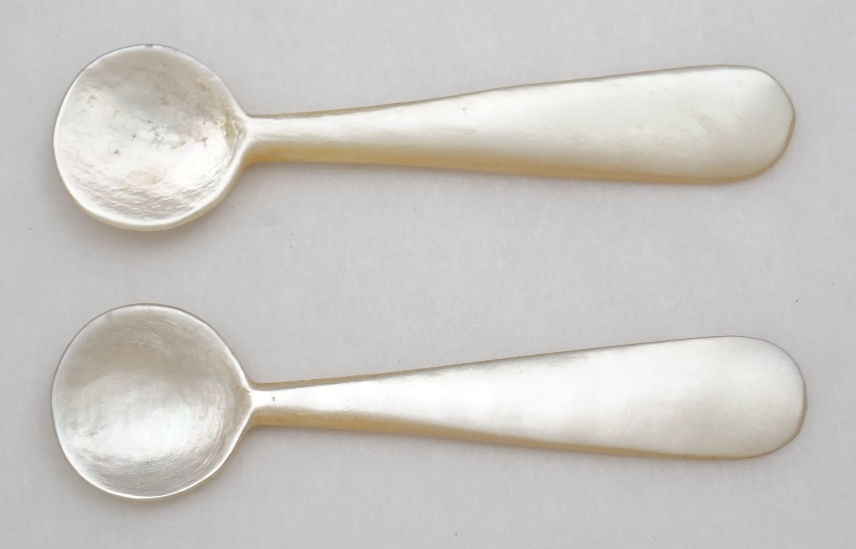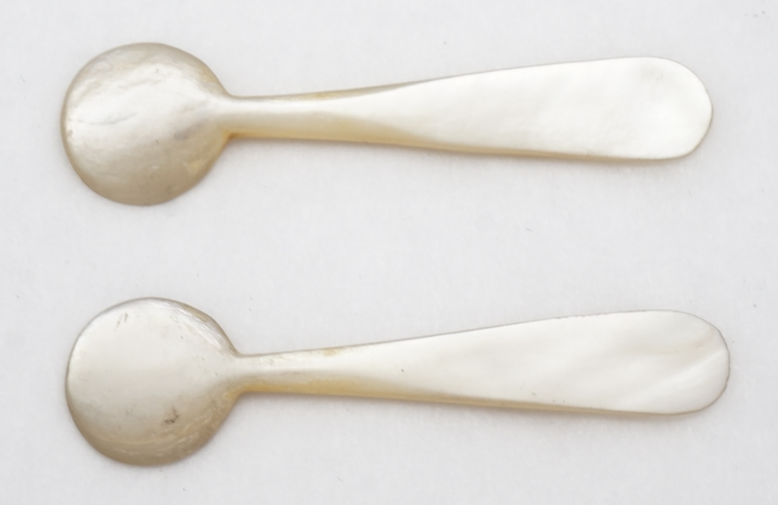 DESCRIPTION | Pair of mother of pearl salt spoons. |