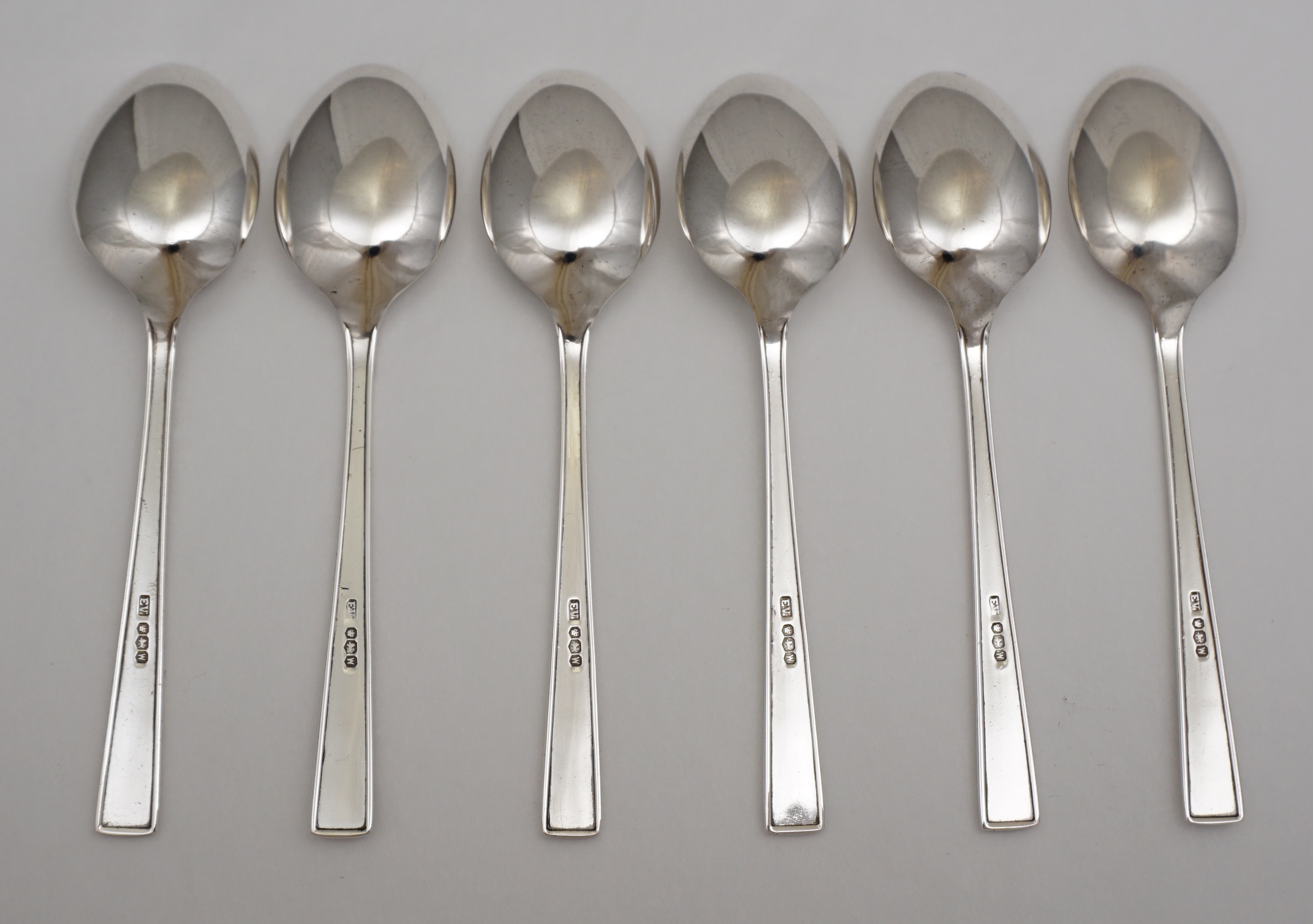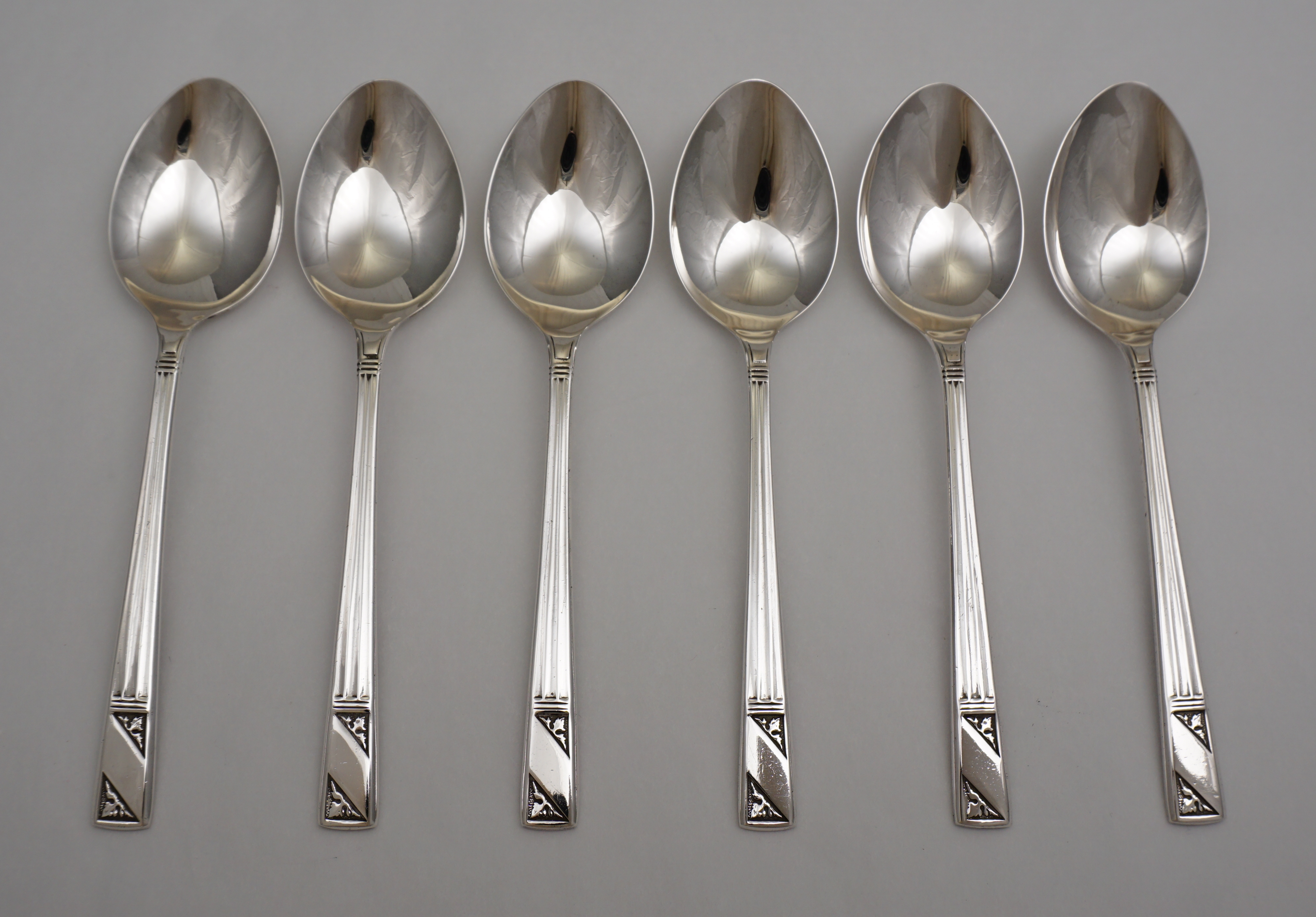 DESCRIPTION | Good set of six vintage Art Deco style English solid sterling silver teaspoons. |
