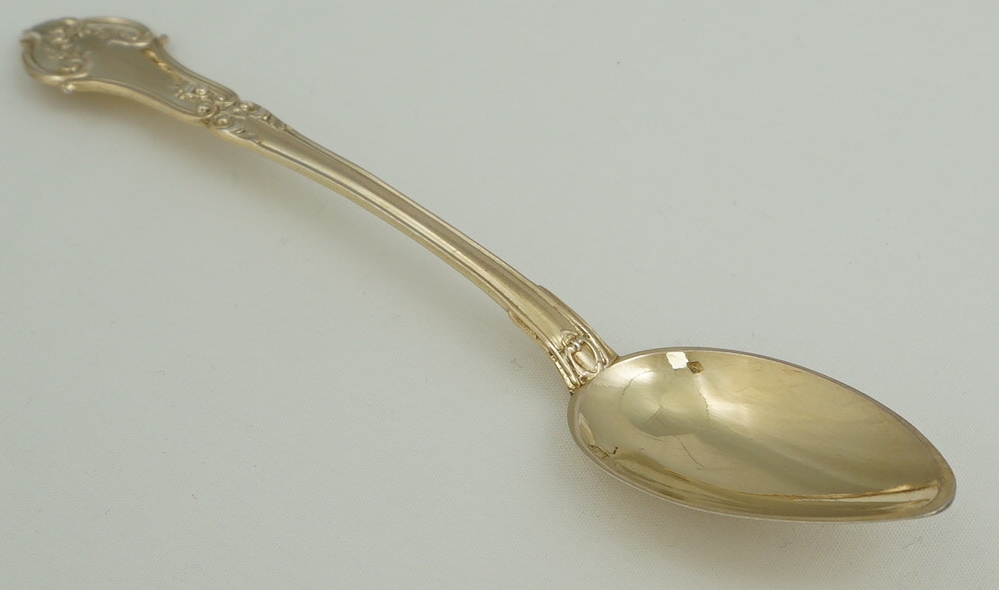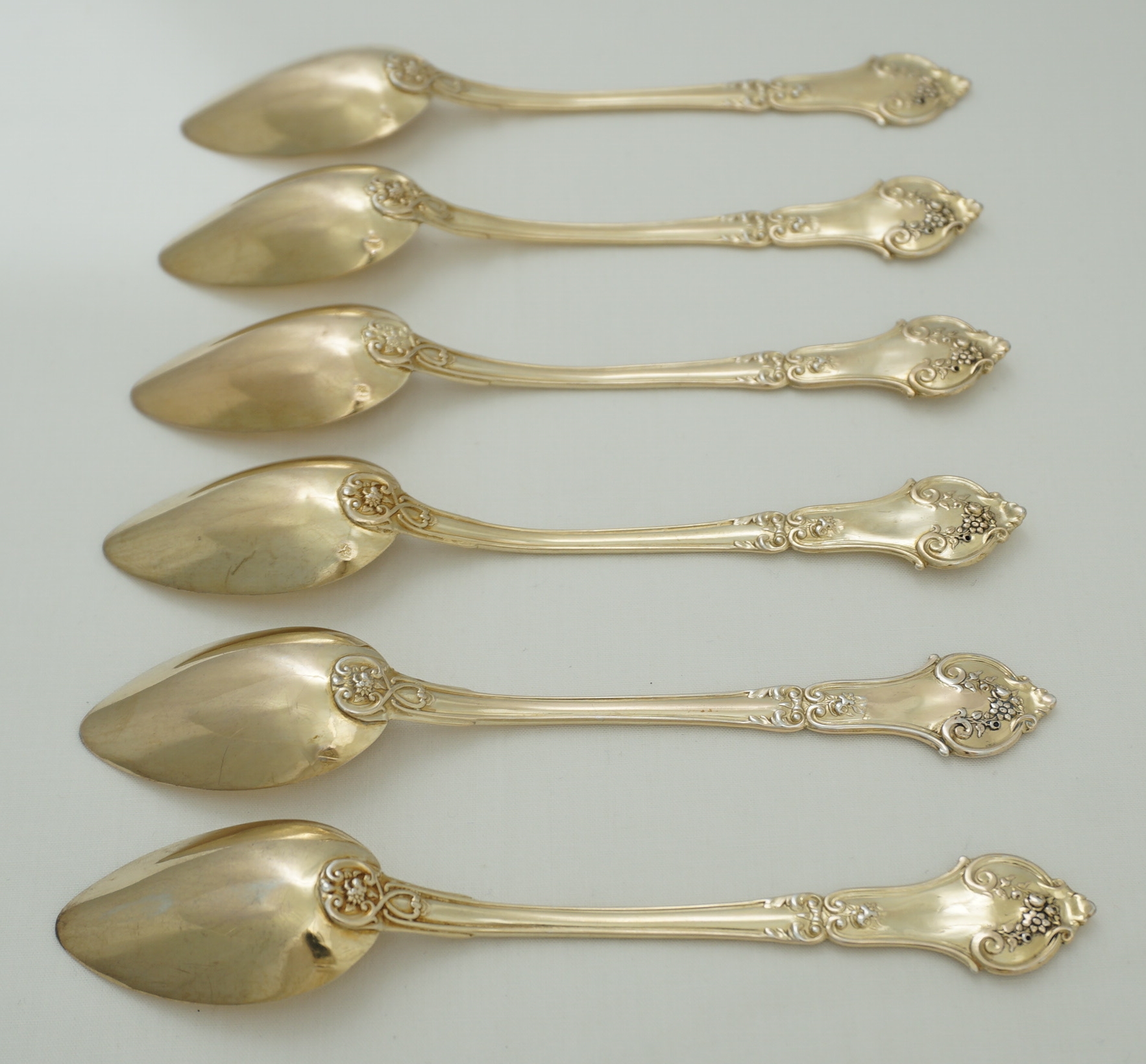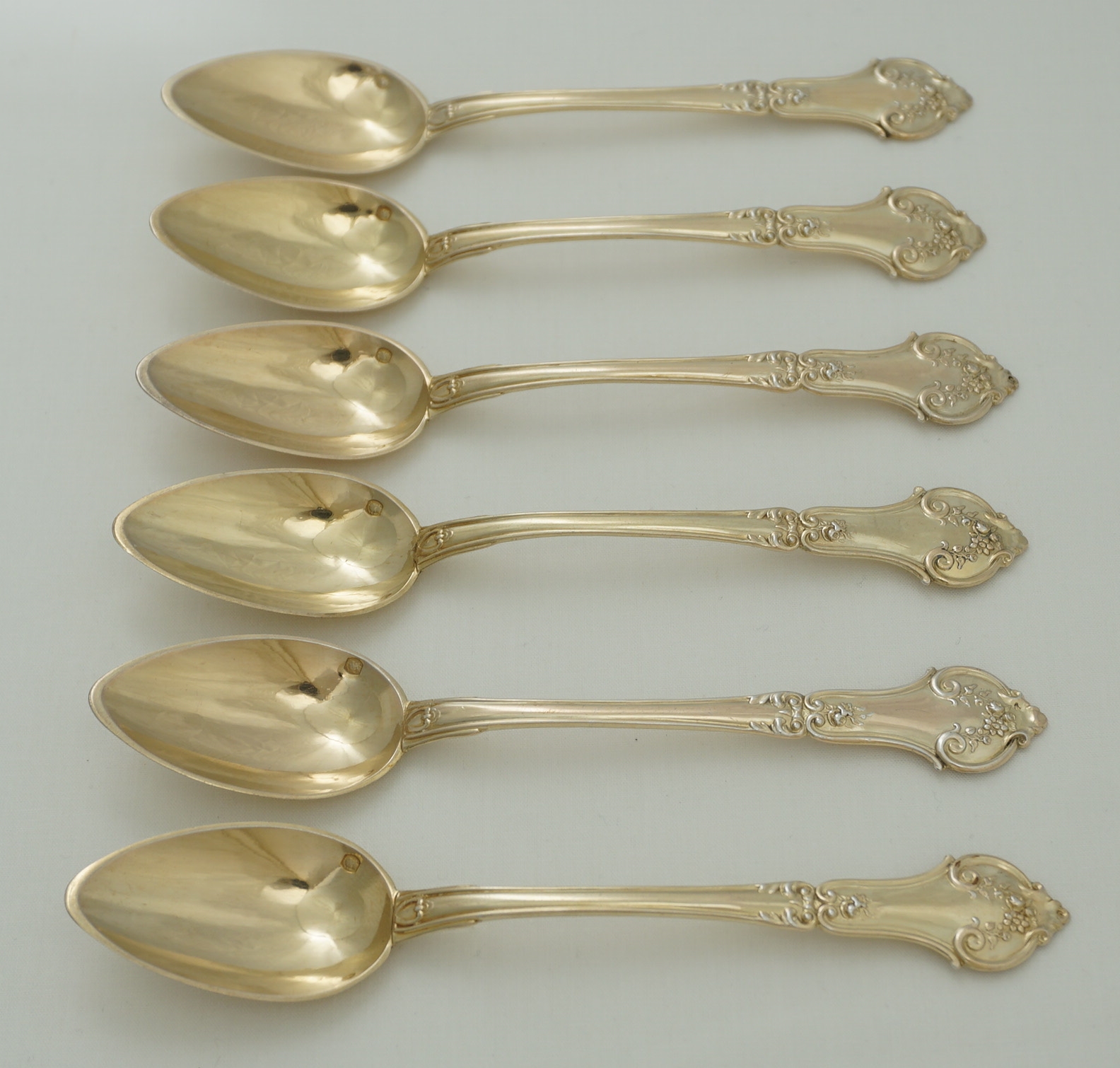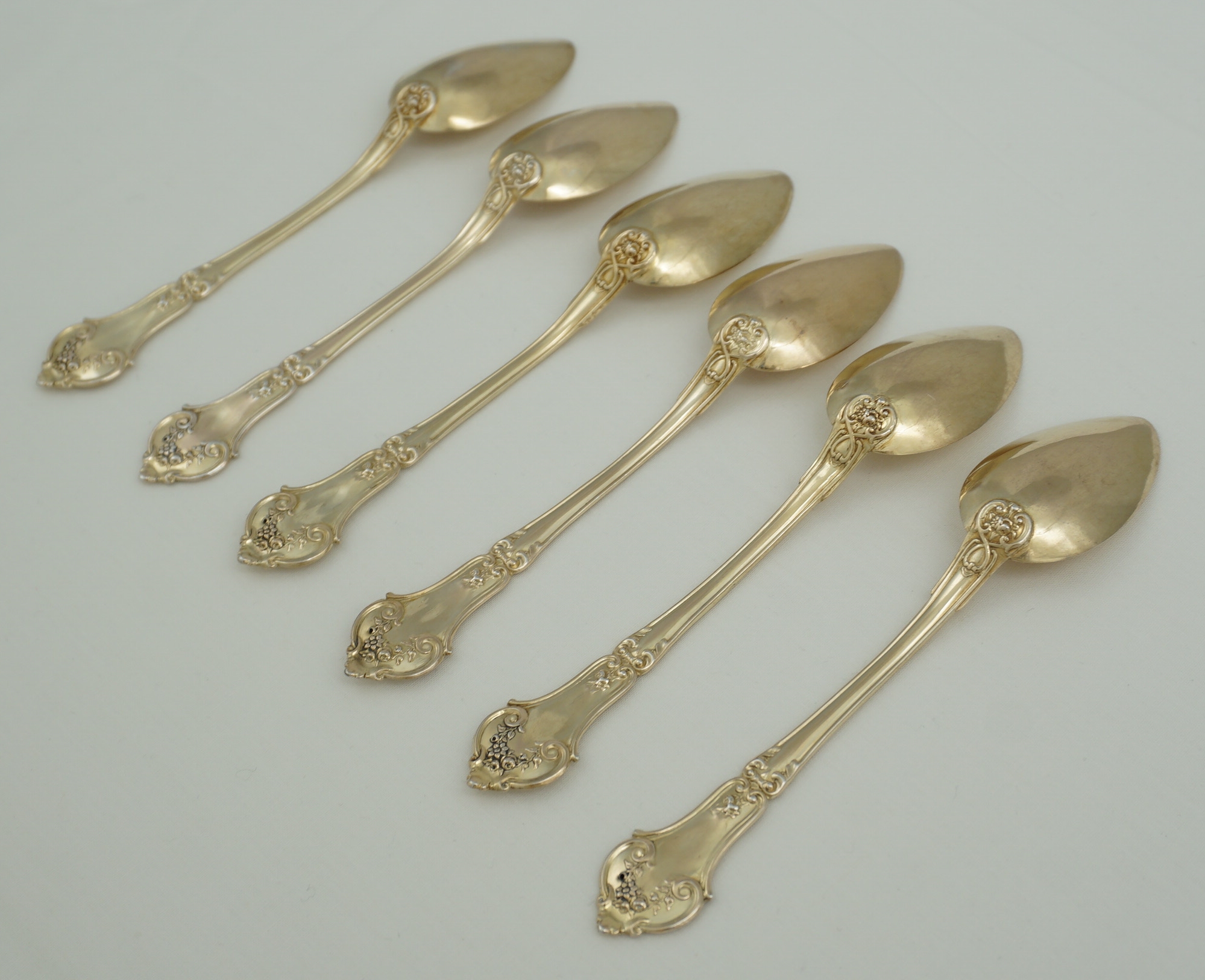 DESCRIPTION | Pretty and cased set of six antique/vintage French solid gilded silver teaspoons. |
