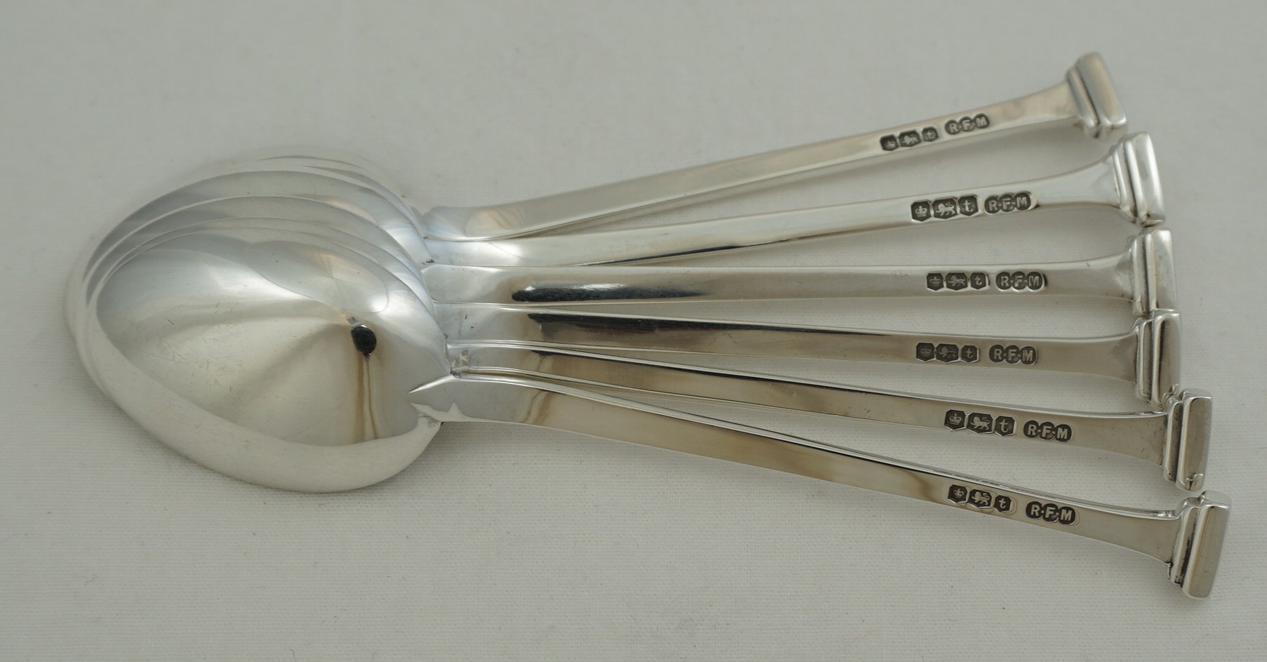| DESCRIPTION | Good set of vintage English solid sterling silver coffee spoons with original fitted case. |