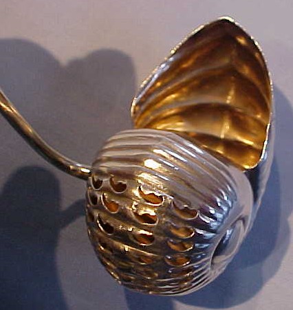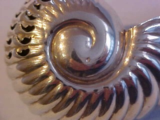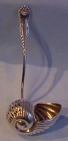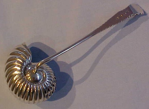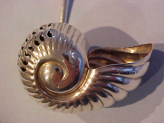 Unusual Edwardian silver sugar sifter spoon shaped as a snail shell. |