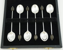 Six vintage Art Deco style teaspoons, Emile Viner, Sheffield 1964, 117mm, 95g. |