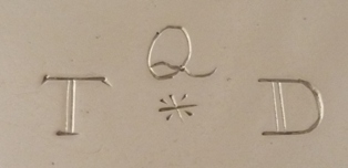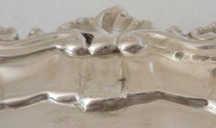 one leg must have pushed up at some time as there is an old but well executed repair to the rim above. |