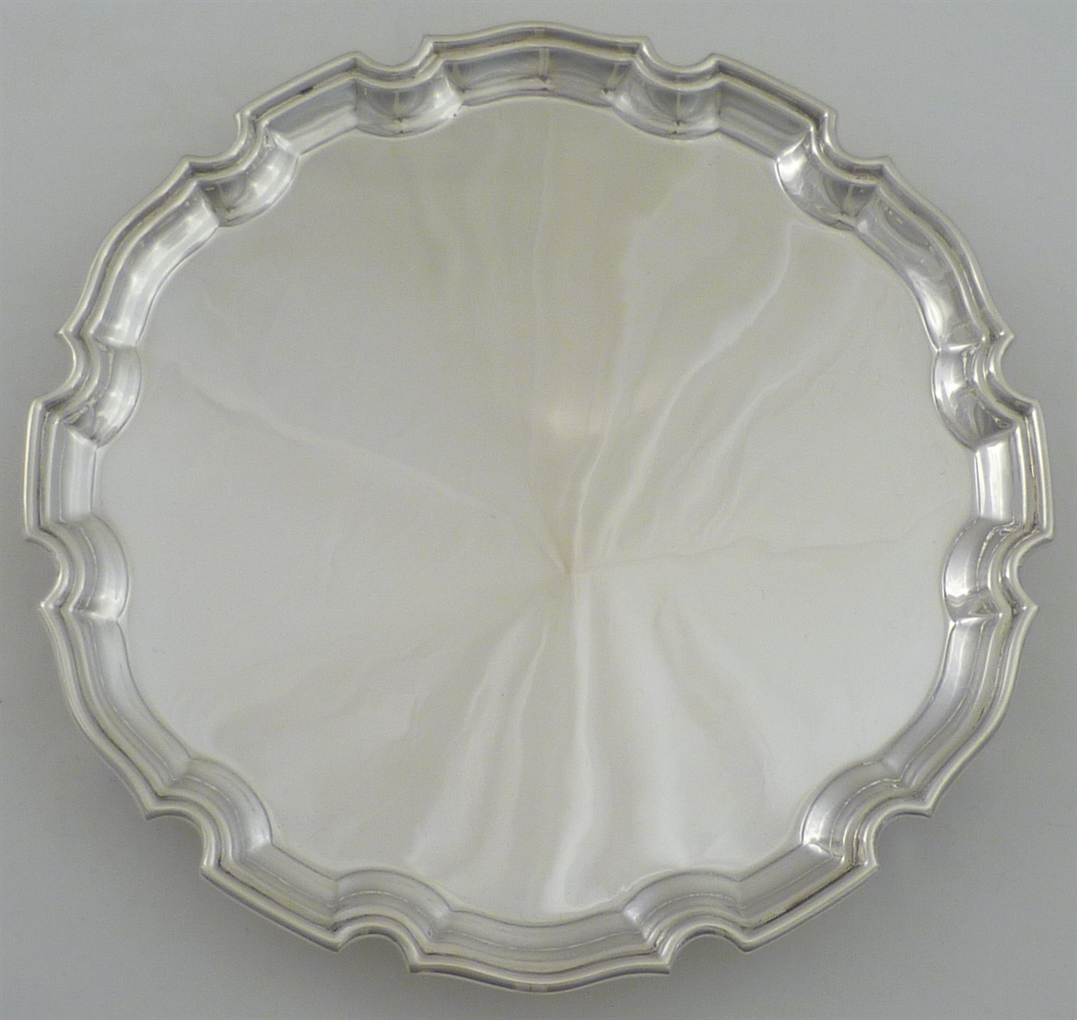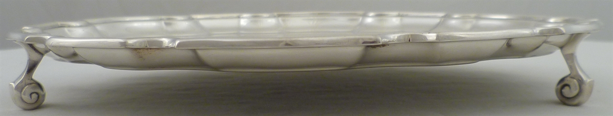 DESCRIPTION | Solid silver salver on three scroll feet and with no engraving or erasure. |