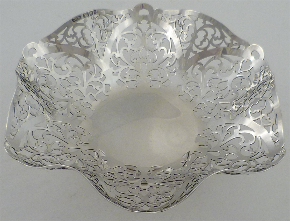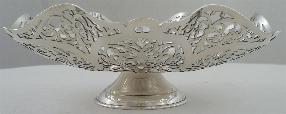 DESCRIPTION | Very pretty handkerchief form pierced silver dish on a pedestal base. Fine quality hand pierced decoration. |