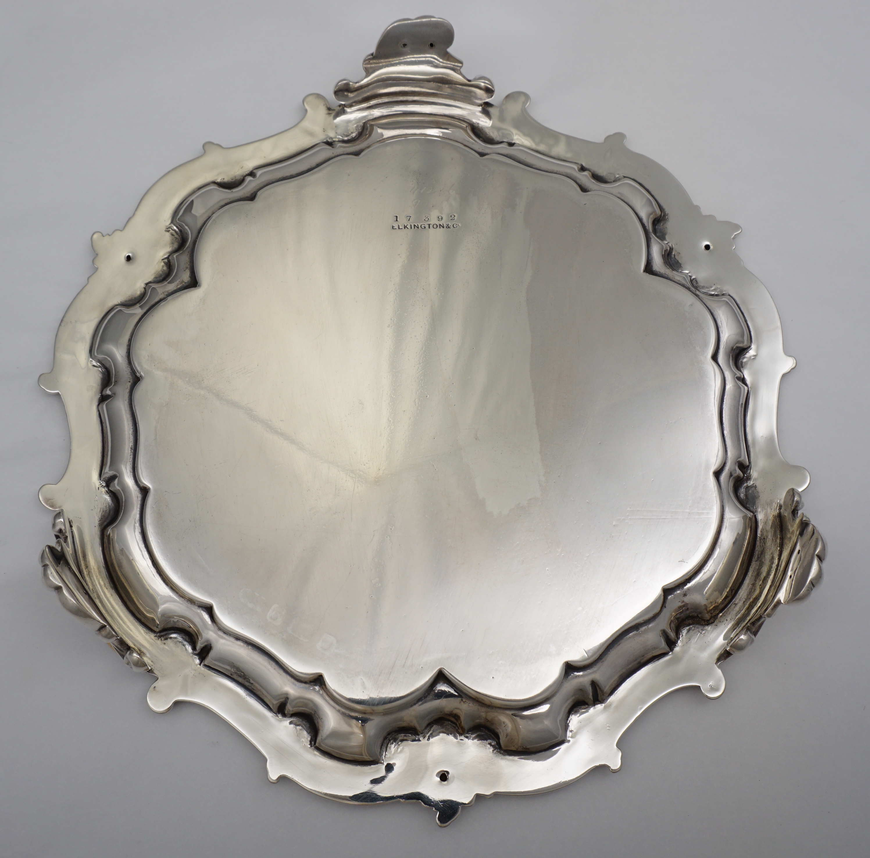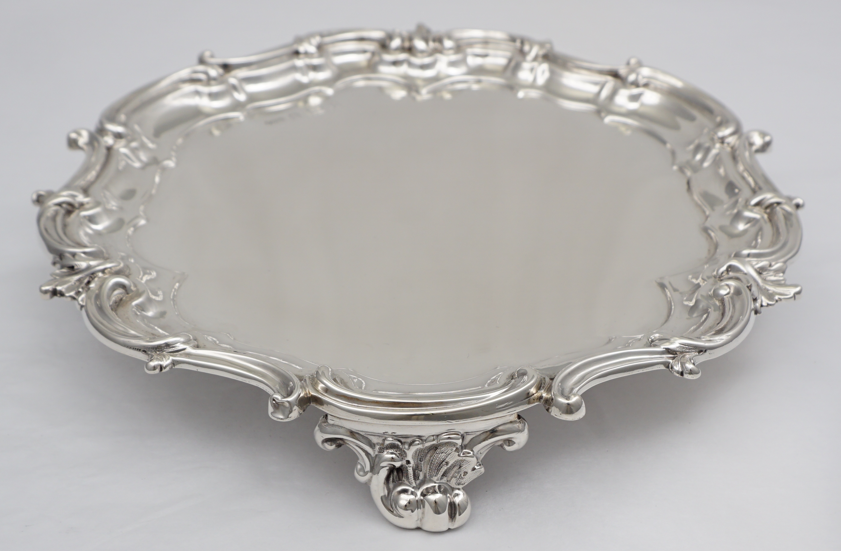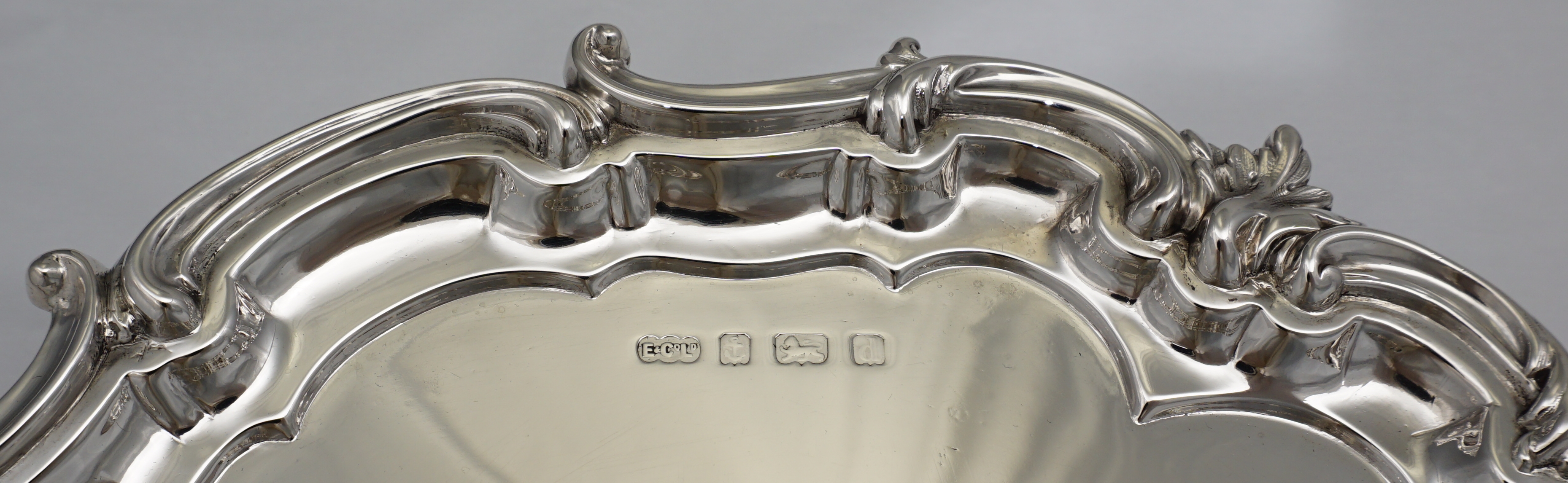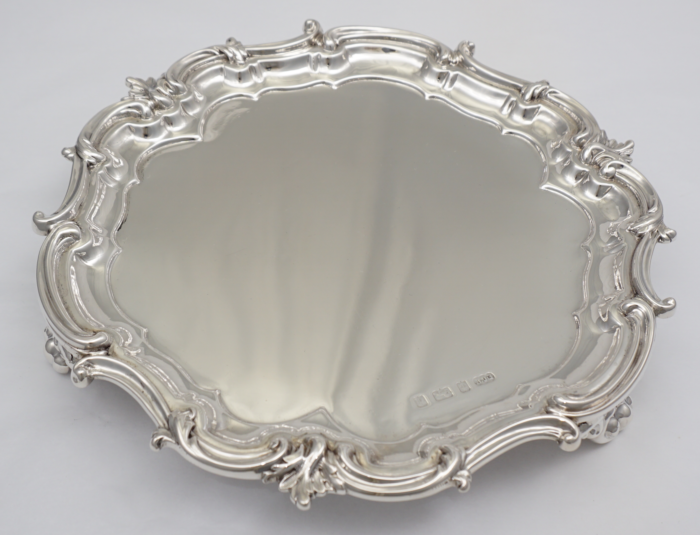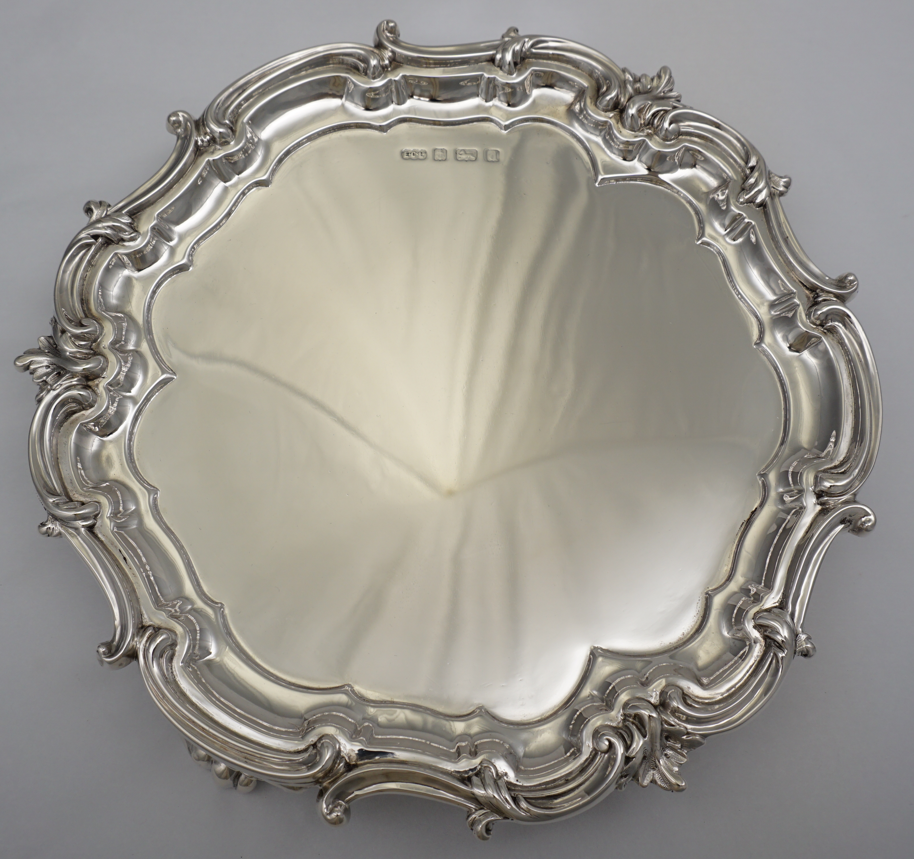 DESCRIPTION | Antique English Edwardian solid sterling silver salver with no engraving or erasure. |