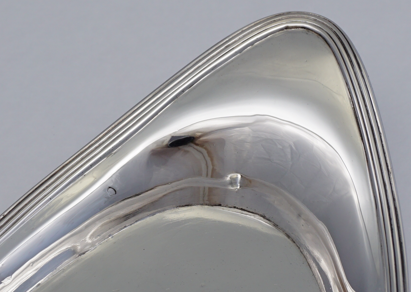 CONDITION | very good, no engraving or erasure, some surface marks, little bumps and digs commensurate with use. Tiny, about 2mm, flaw now visible in the internal side. This is an impurity in the original silver ingot that was buried within the metal below the surface and has now been exposed by polishing. |