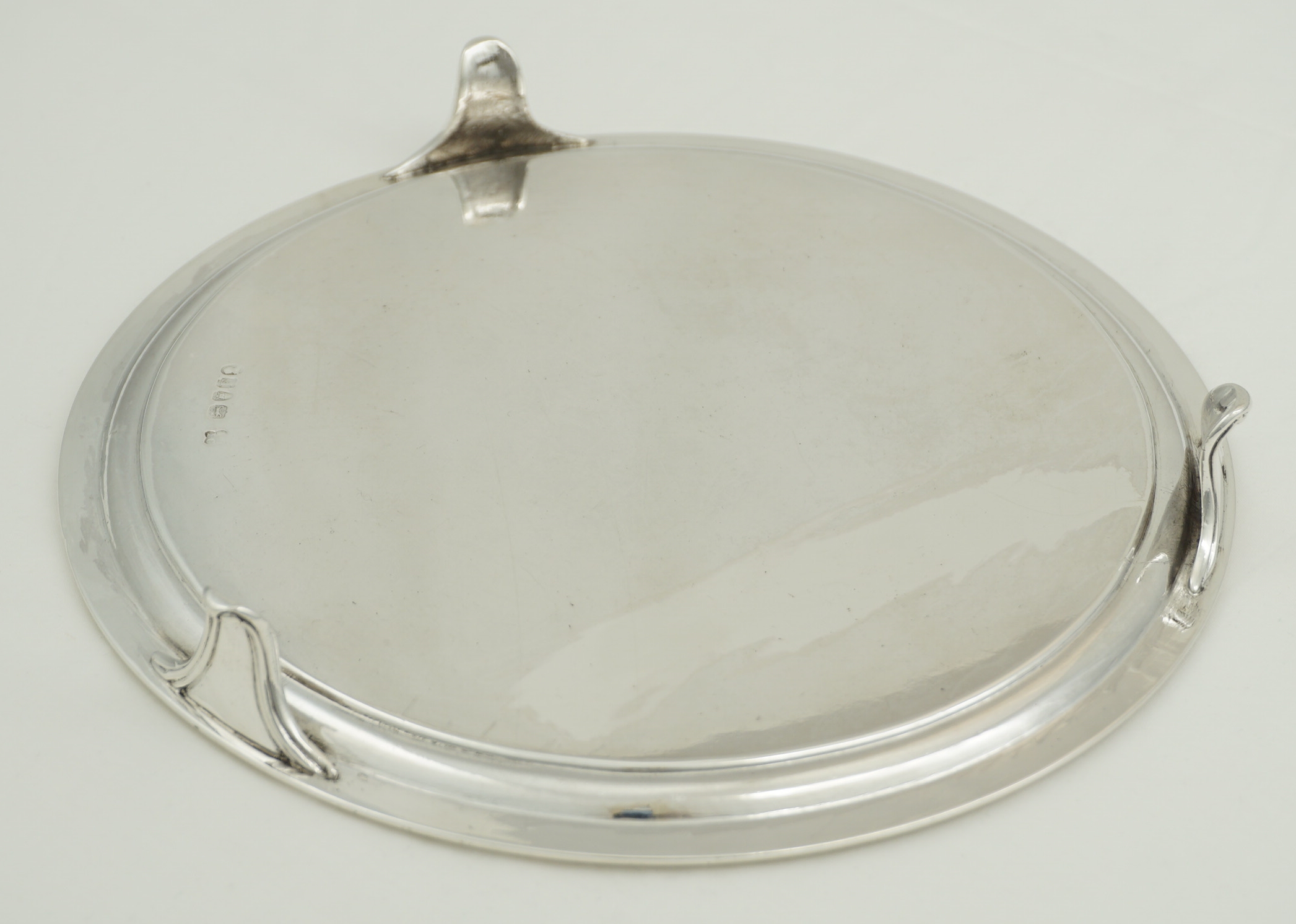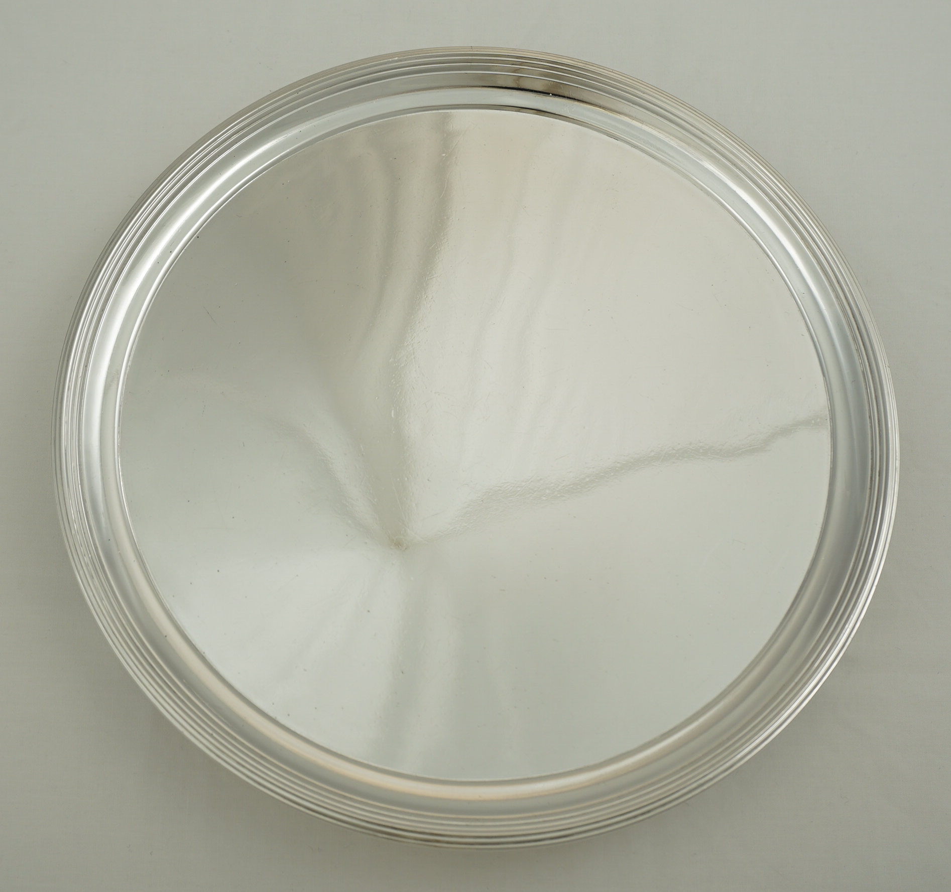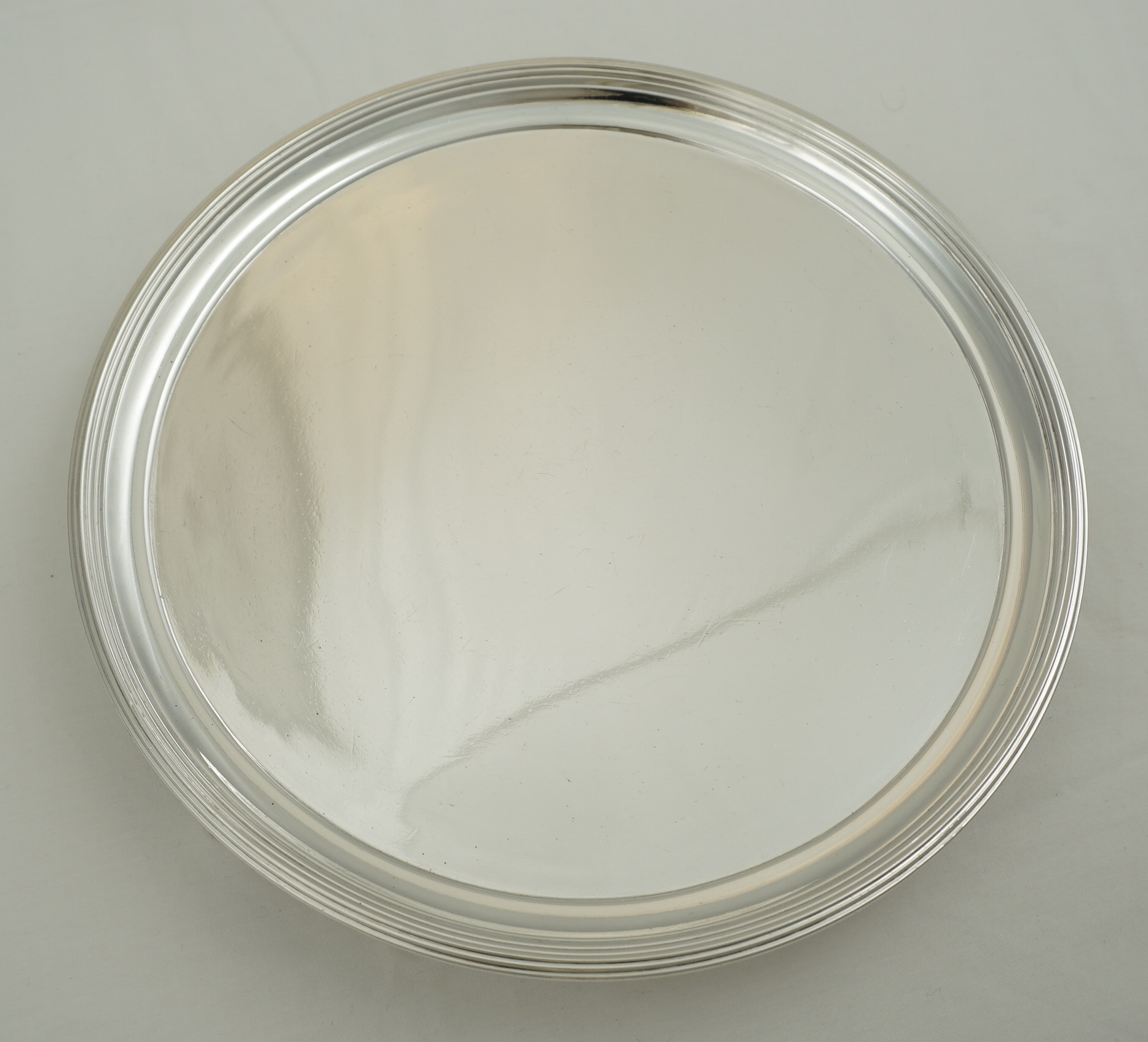 DESCRIPTION | Good antique English Georgian solid sterling silver salver on three scroll and thread feet and with no engraving or erasure. Nice feature is the original assayer's scrape still visible to the underneath. |