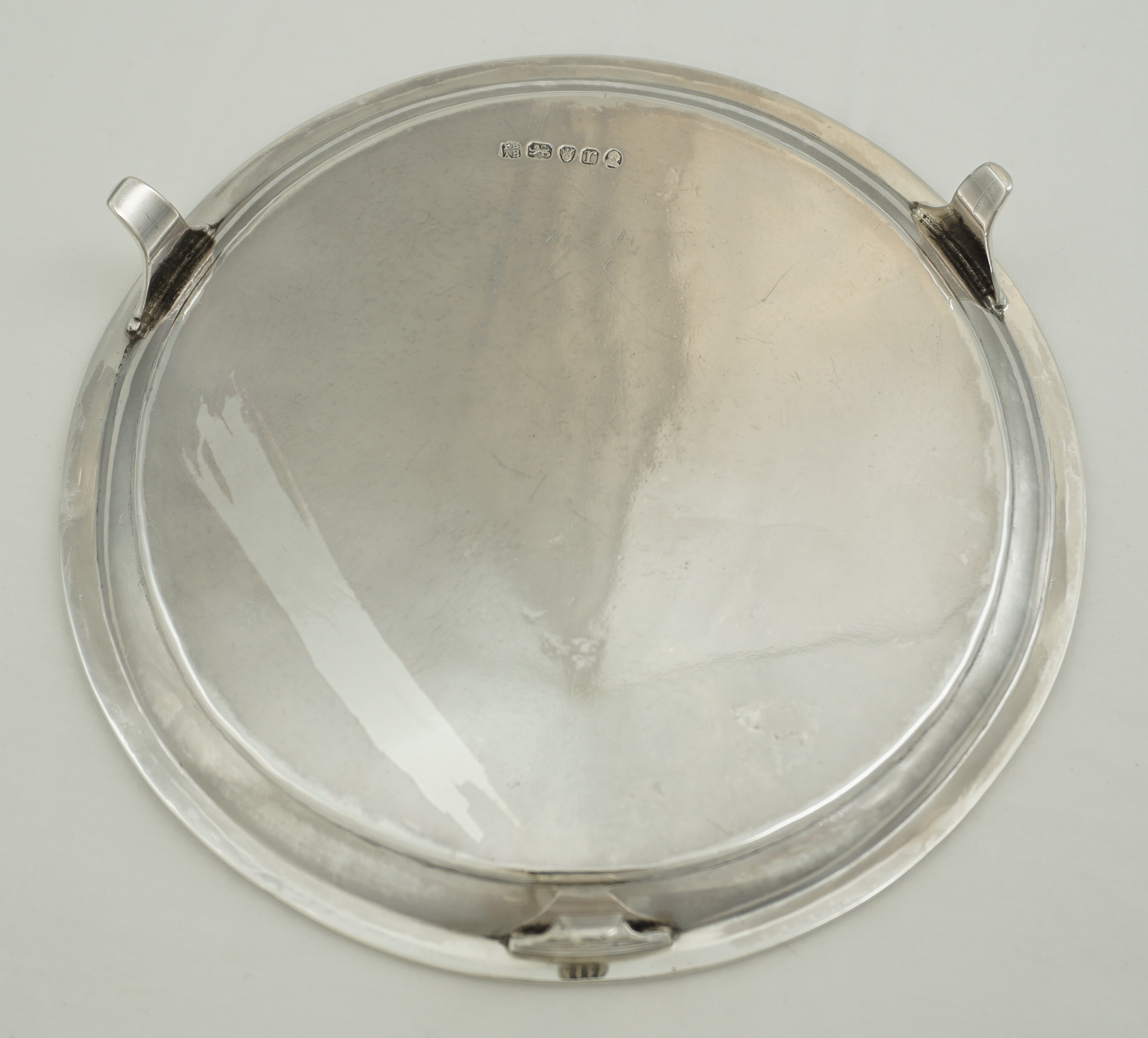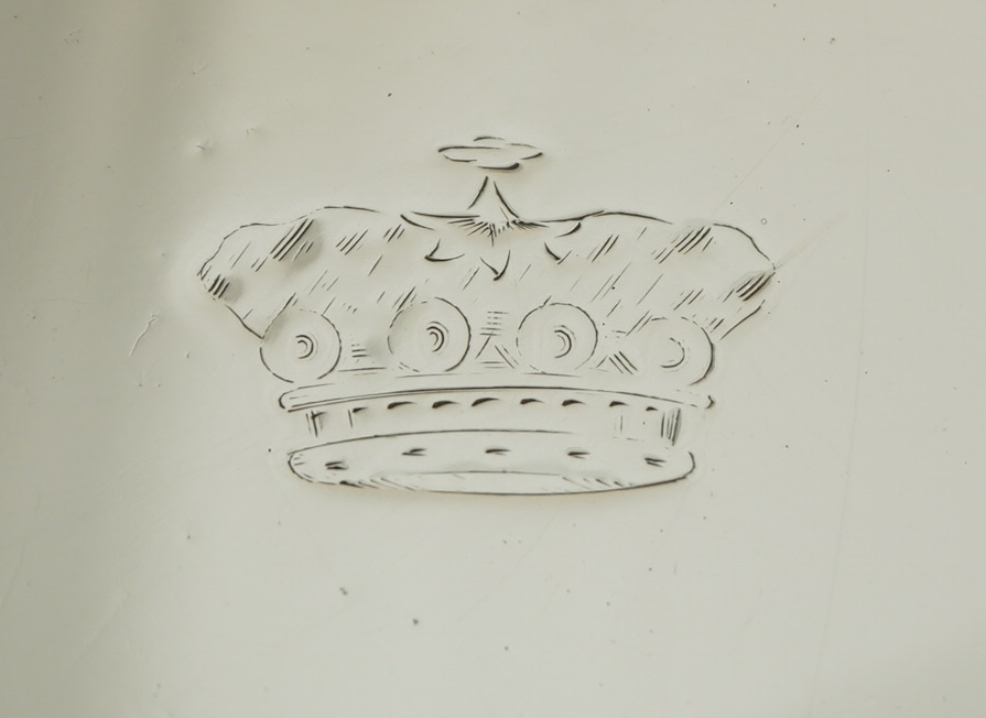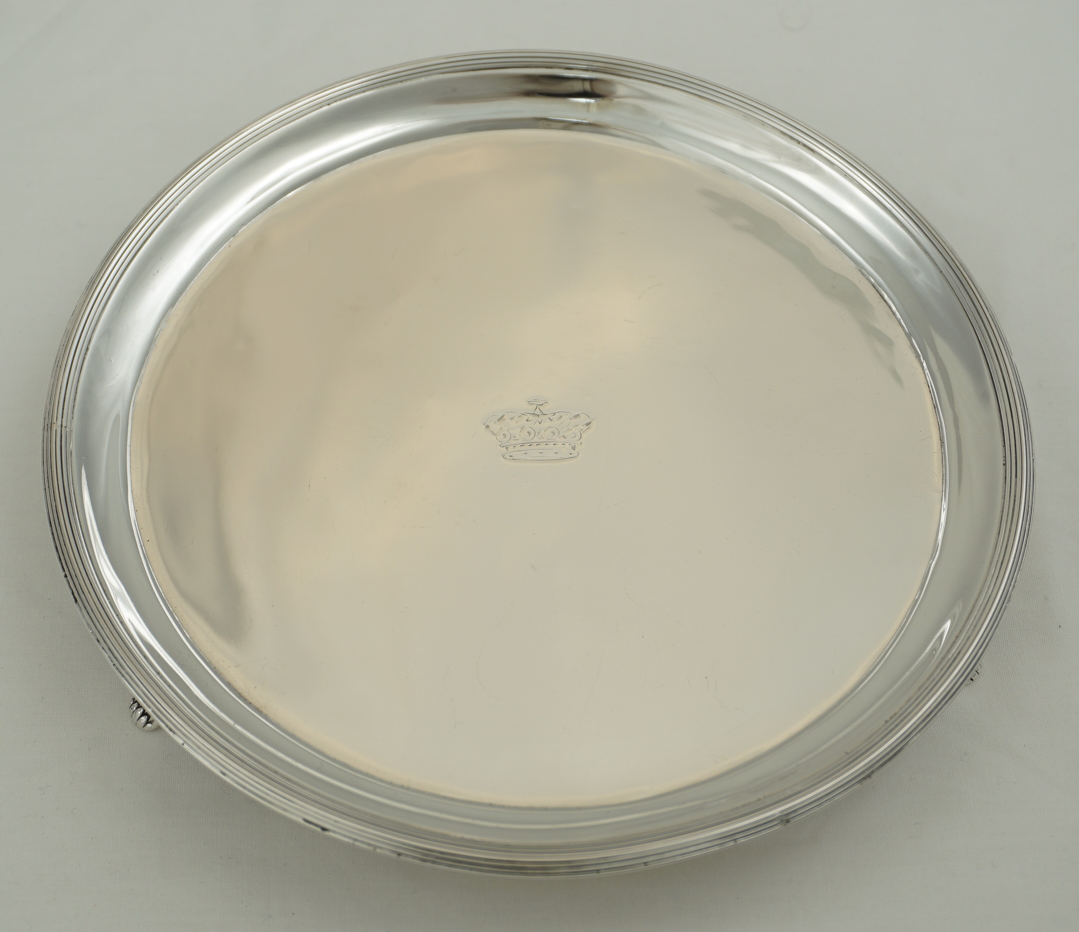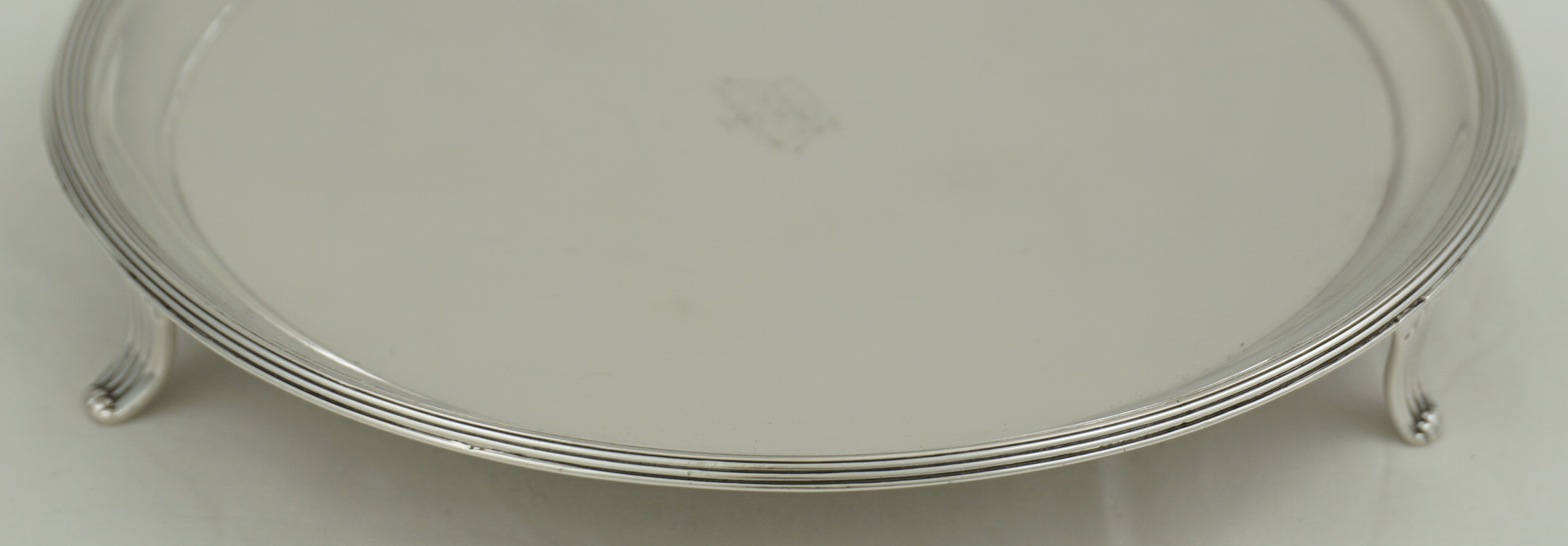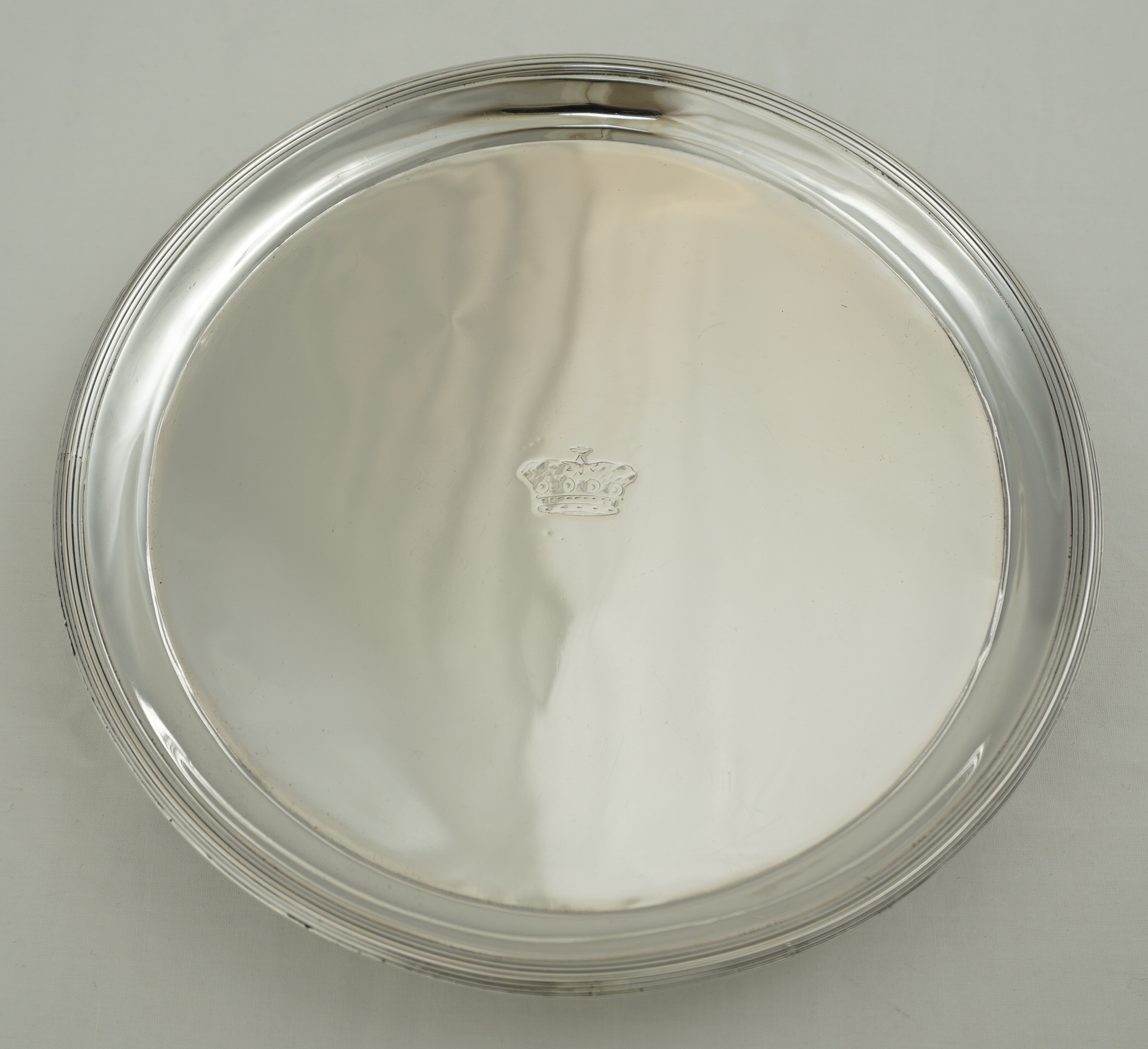 DESCRIPTION | Good and useful antique English Georgian solid sterling silver waiter (small salver, usually under 7" wide) with thread decoration and a central Baron's Coronet engraving. Nice to see the original assayer's scrape to the underside and the well struck and well preserved hallmarks. |