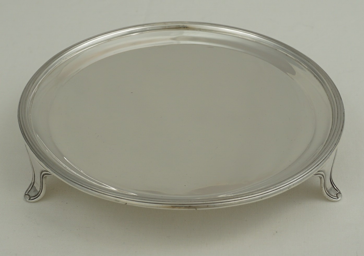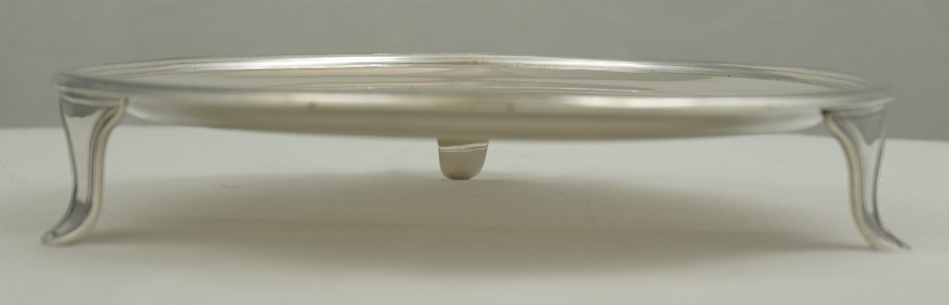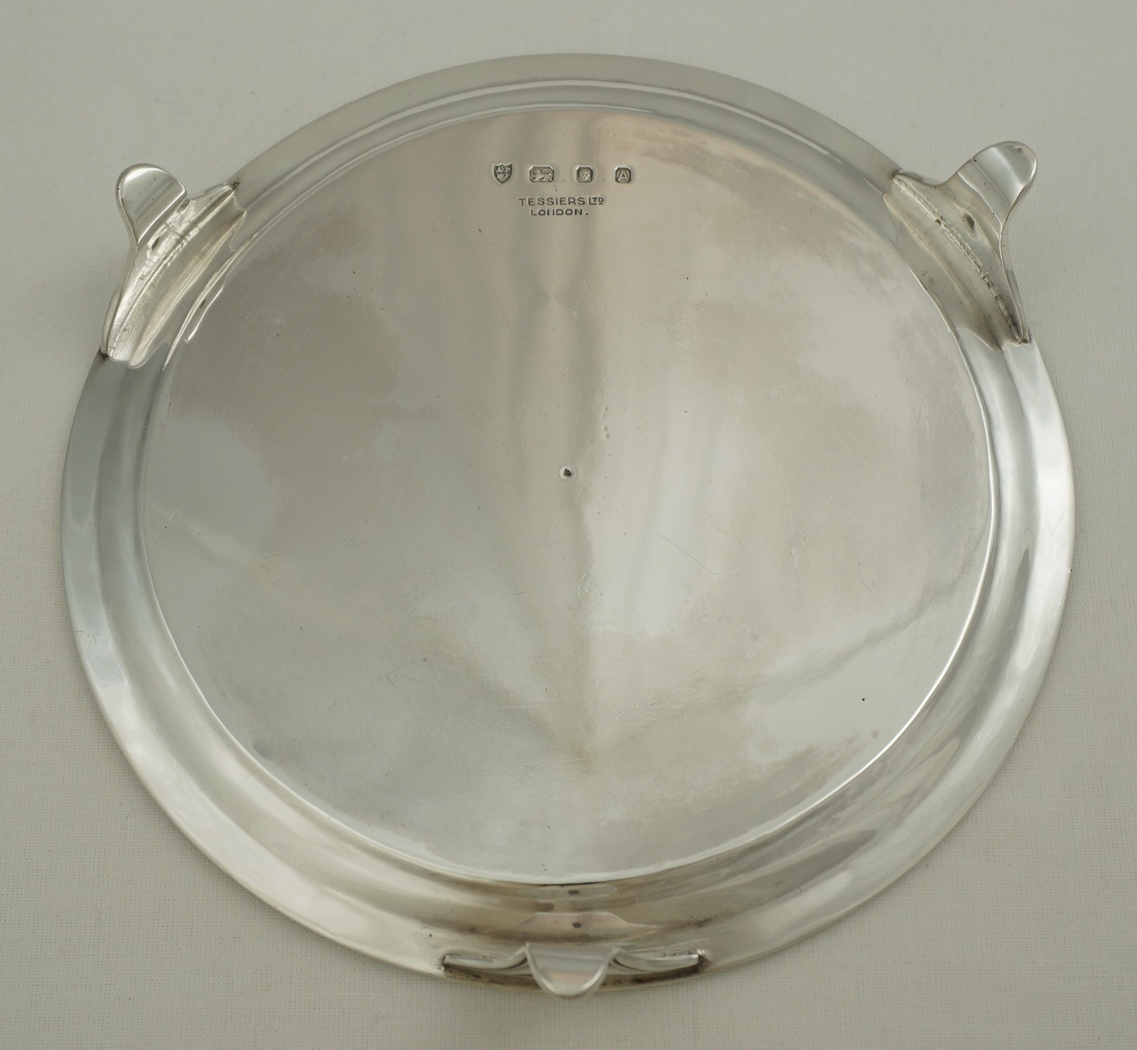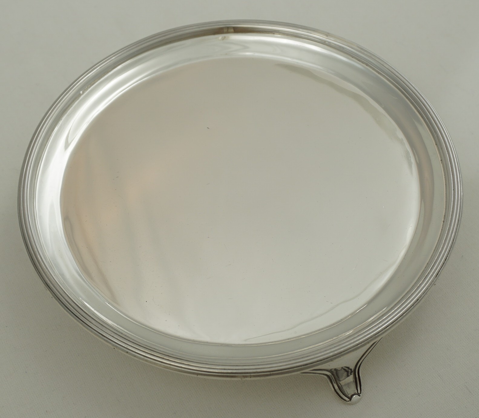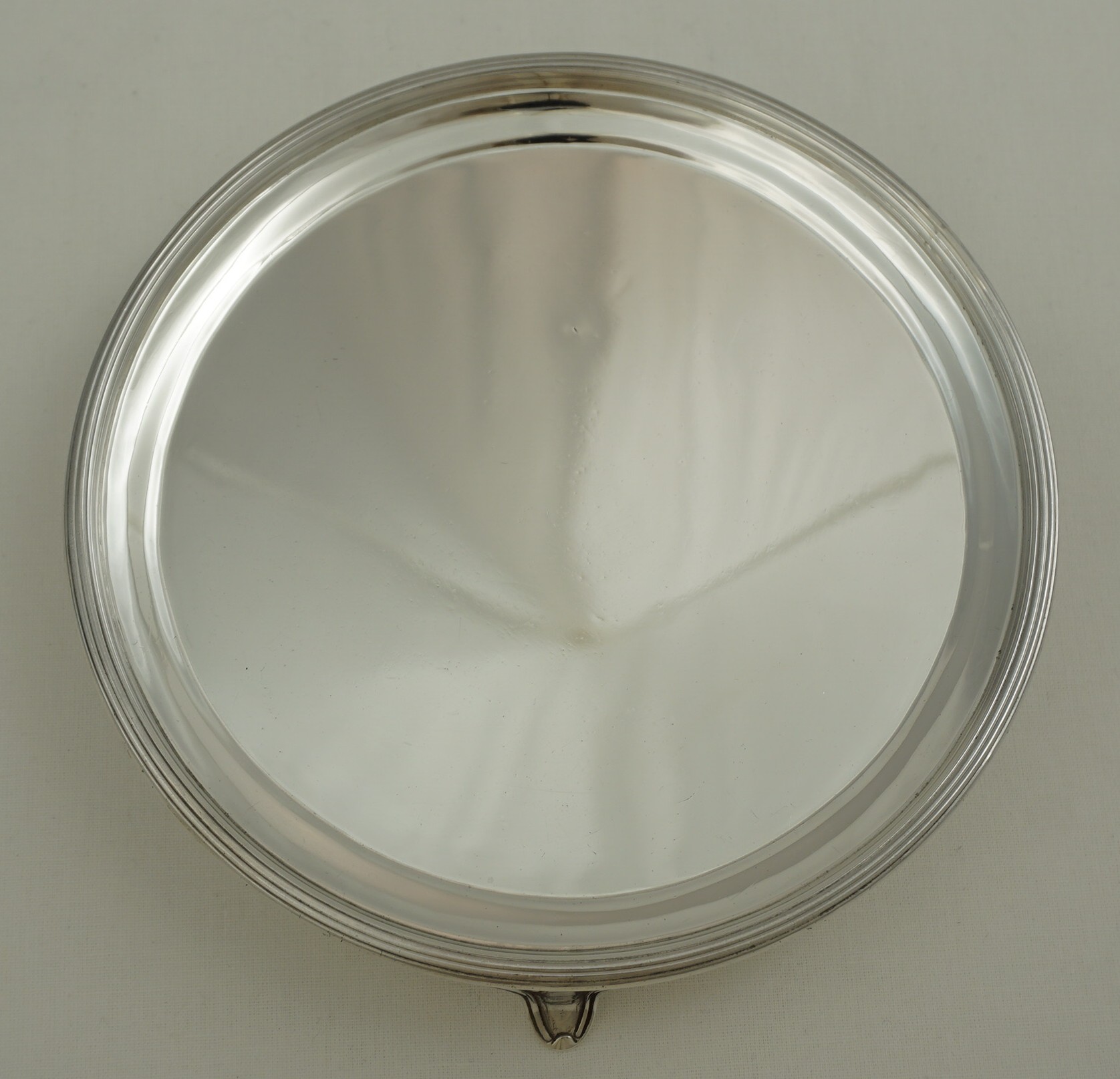 DESCRIPTION | High quality and surprisingly heavy vintage English solid sterling silver waiter with thread decoration and no engraving or erasure. |
