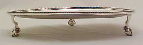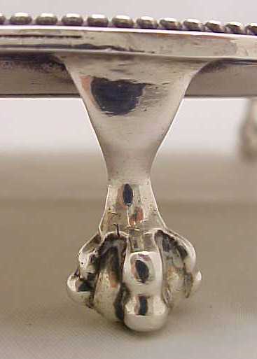 Georgian silver waiter with crisp bead edged decoration and wonderfully detailed ball and claw feet. |