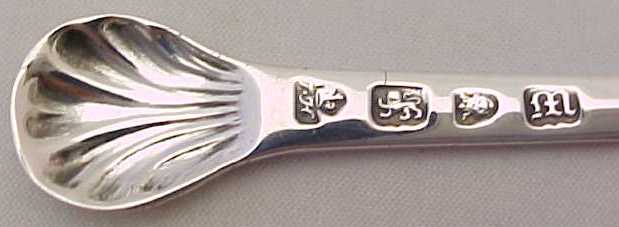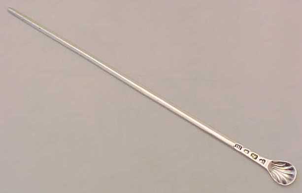 Unusual Georgian silver meat or large poultry skewer with a shell bowl terminal. |