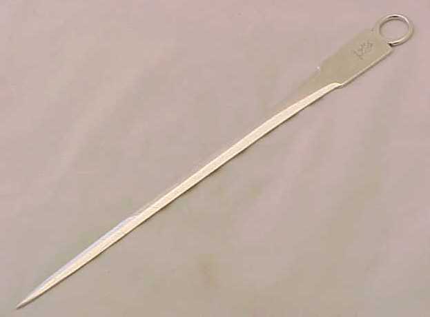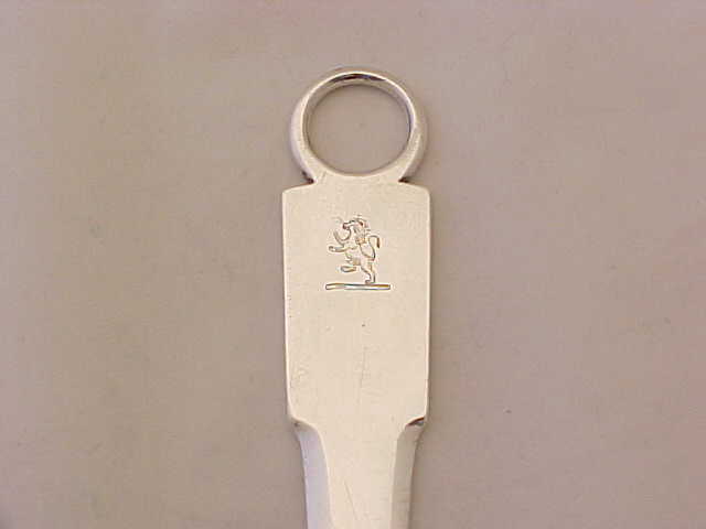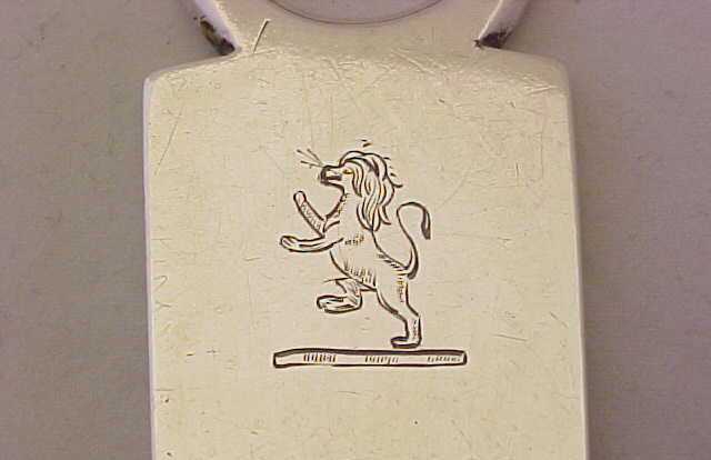 Unusual provincial Georgian silver Fiddle pattern meat skewer crested with the least threatening lion that I have ever seen. |