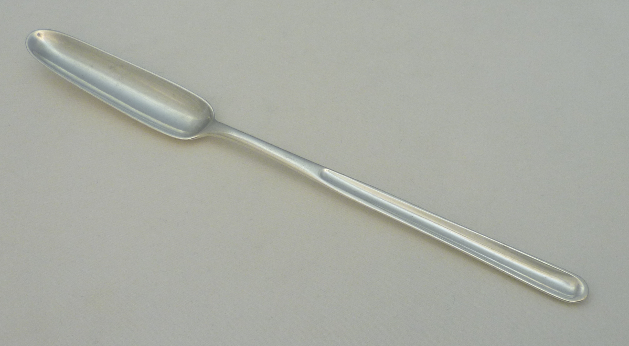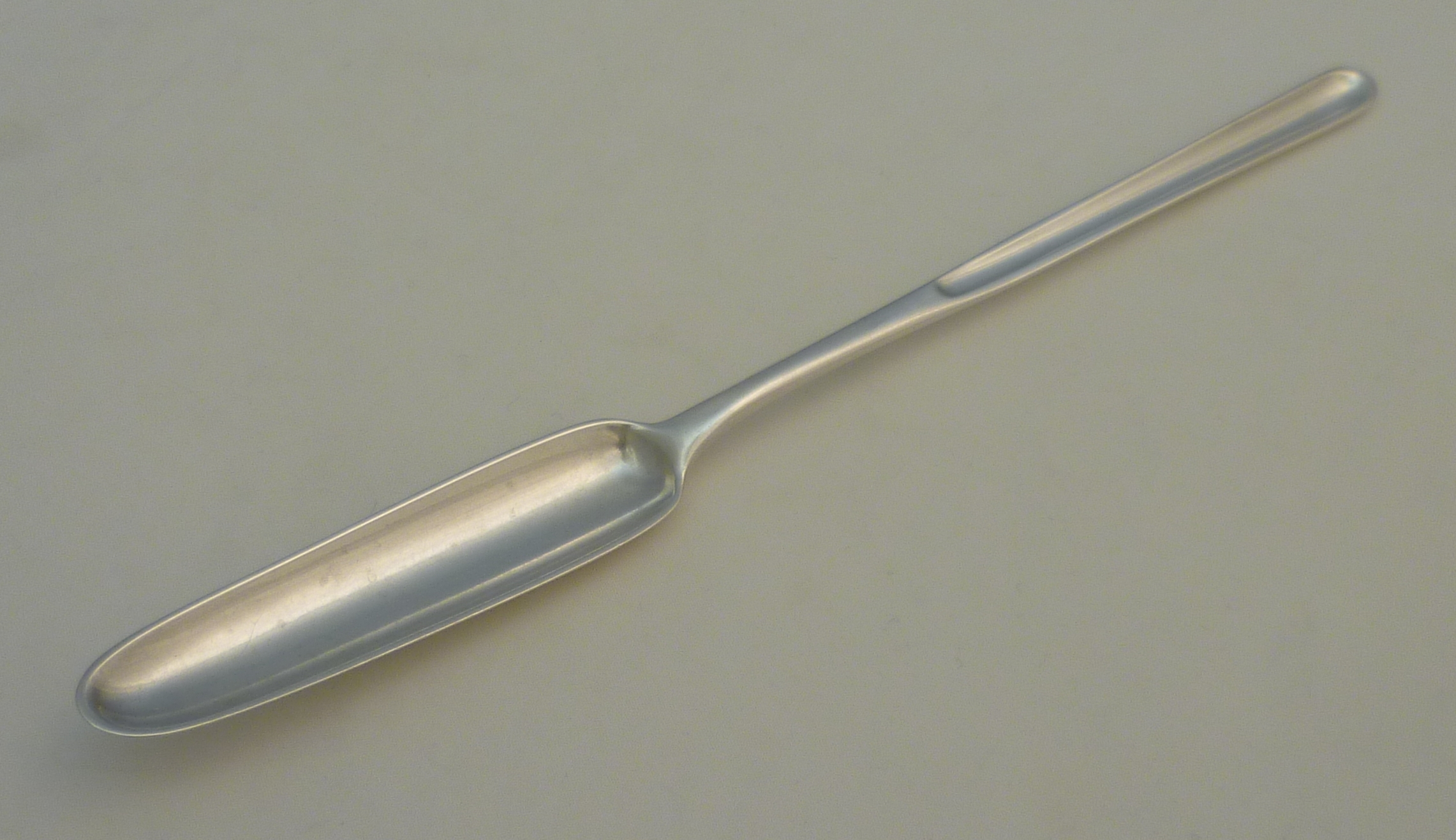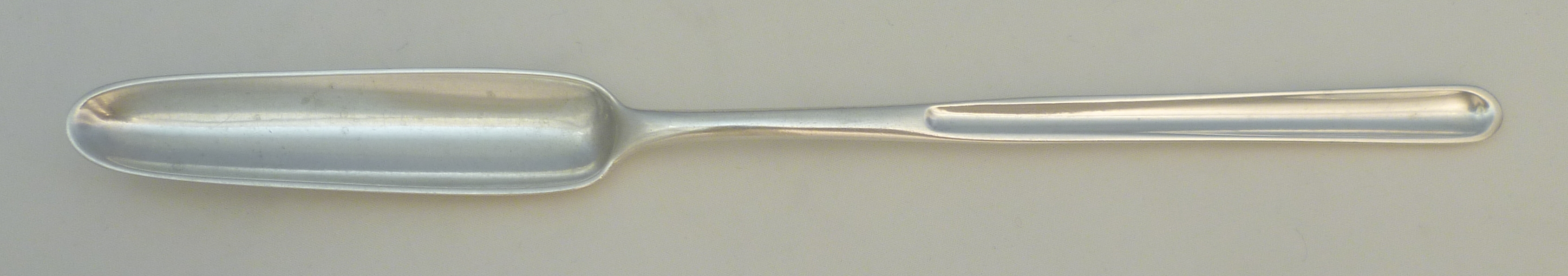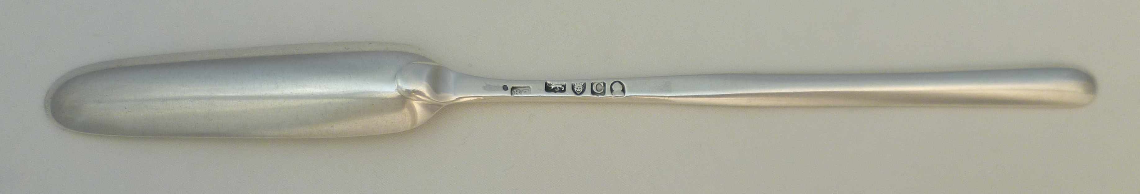 DESCRIPTION | English Georgian solid sterling silver marrow scoop with a single drop and nice hallmarks. |