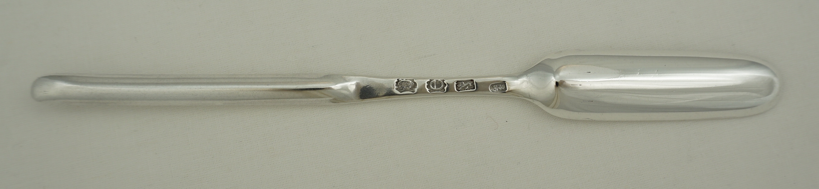 DESCRIPTION | Excellent English Georgian solid sterling silver marrow scoop with beautifully struck and well preserved hallmarks. |