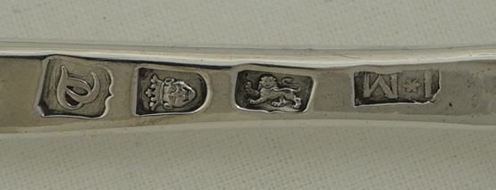 SILVERSMITH | John Moore, probably, there were a few silversmiths using the I*M mark but John seems most likely considering the production of his and the others' masters. |