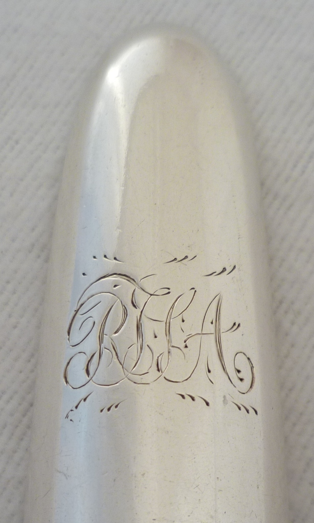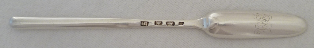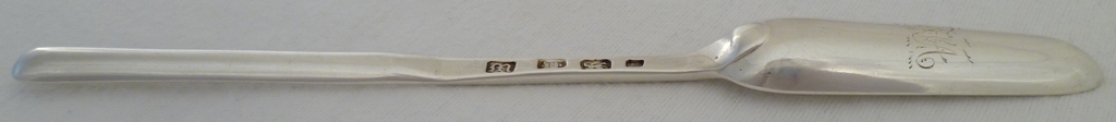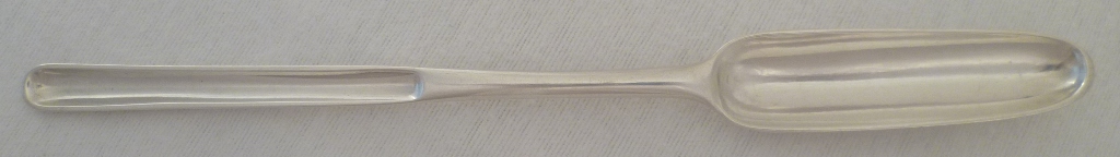 DESCRIPTION | Georgian silver marrow scoop with original monogram engraving to the back of the beef bowl. |