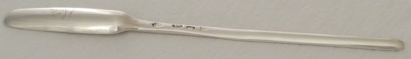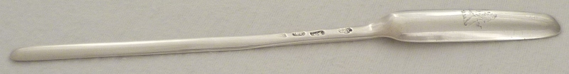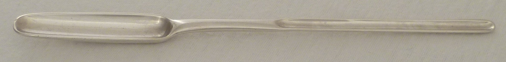 DESCRIPTION | Early Georgian silver marrow scoop with a crested beef bowl. Broad and chunky example with good hallmarks. |