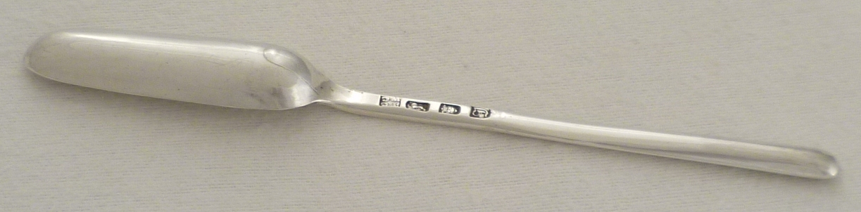 DESCRIPTION | Large, hefty Georgian silver marrow scoop with no engraving and good hallmarks. |