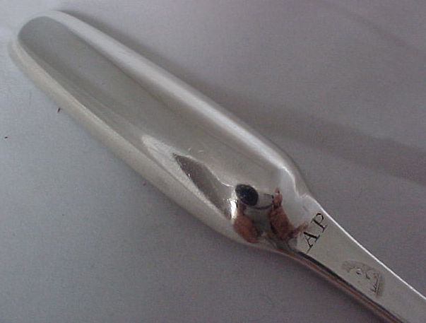 Queen Anne marrow scoop in wonderful original condition and subtly engraved with the initials 'AP' towards the heel. | ||