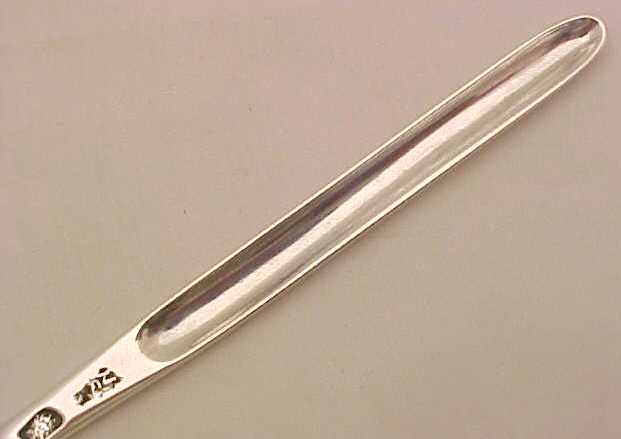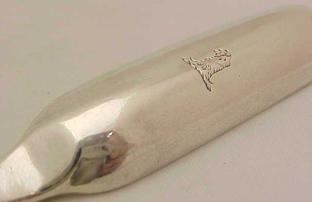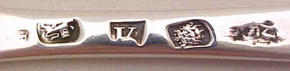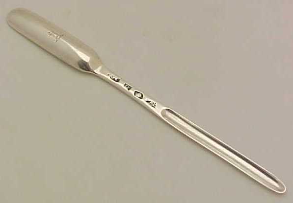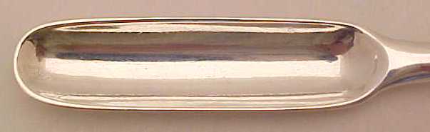 George I silver marrow scoop with a long rat tail and crest to the back of the beef bowl and a reverse lamb bowl. Good hallmarks plus a small additional 'P' mark. |