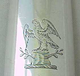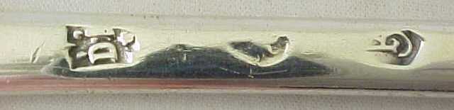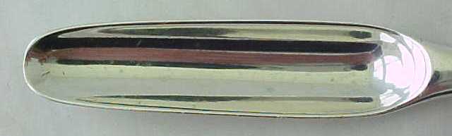 Queen Anne silver marrow scoop, crested to the beef bowl. |