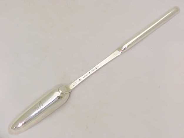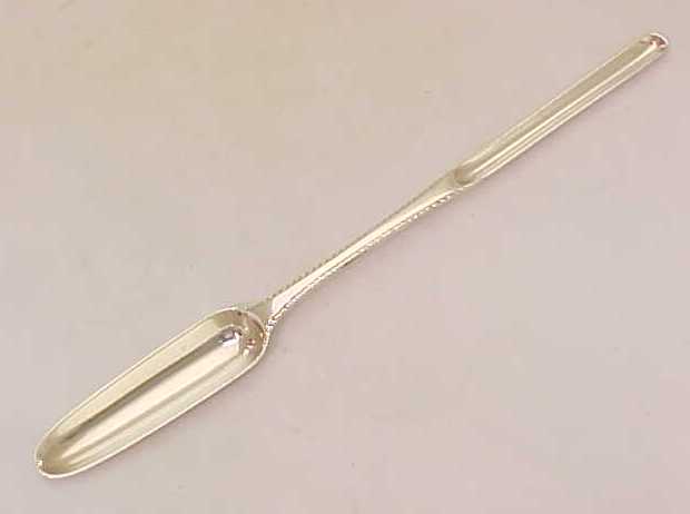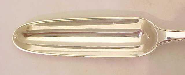 Exceptionally large and heavy Georgian silver marrow scoop with feather edge decoration and a raptor crest to the beef bowl. |