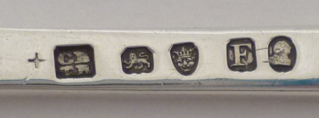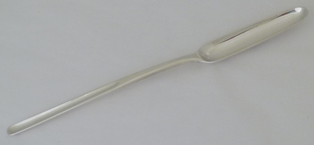 Georgian silver marrow scoop crested to the beef bowl. |