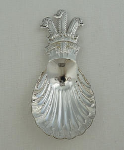 Caddy Spoon Decorated with Prince of Wales Feathers and Motto, Sheffield 1981, 88mm, 24g. |