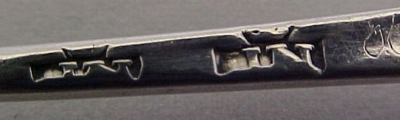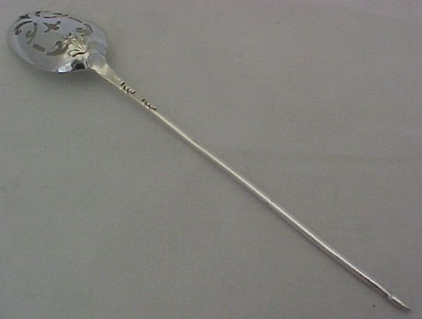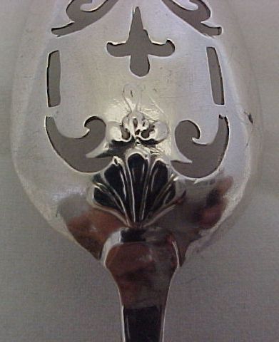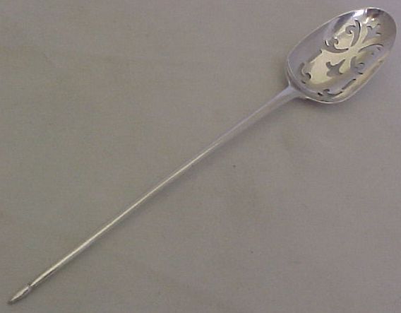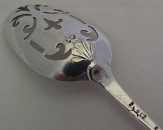 Early Georgian fancy-back silver mote skimmer, simply marked twice by the maker. | |