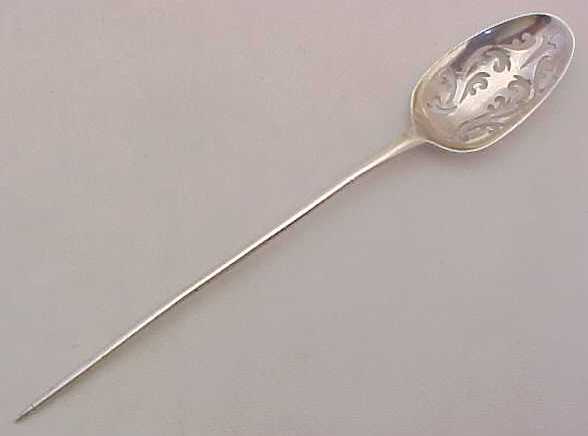 DESCRIPTION | Good early Georgian silver mote spoon with a good, clear maker's mark and a long rat tail. |