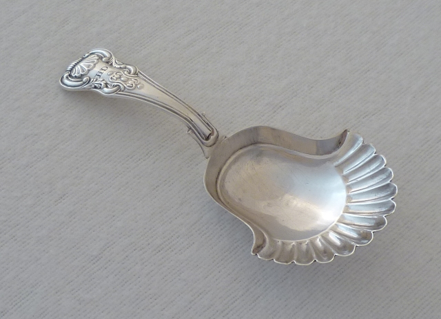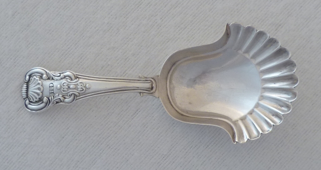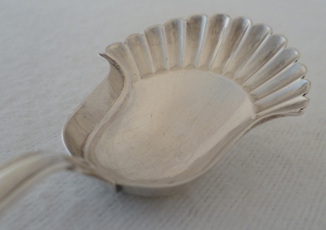 DESCRIPTION | Georgian silver single struck King's Hour Glass pattern caddy with an initial engraving. |