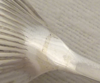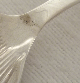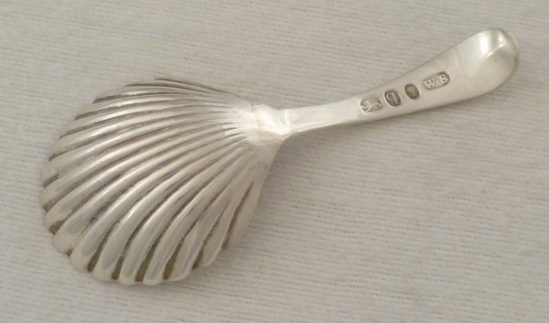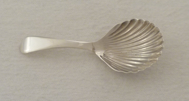 DESCRIPTION | Georgian silver Old English pattern caddy spoon with a shell bowl and no engraving or erasure. |