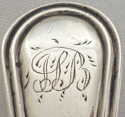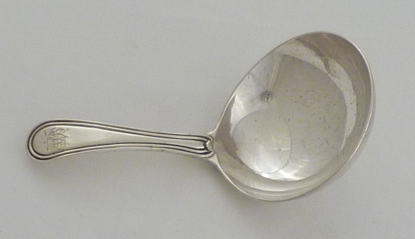 DESCRIPTION | Good Georgian silver single struck Old English & Thread pattern caddy spoon with the original frontal monogram engraving. |