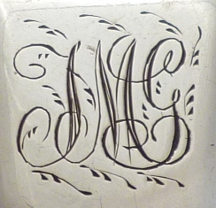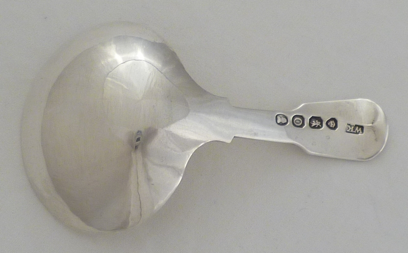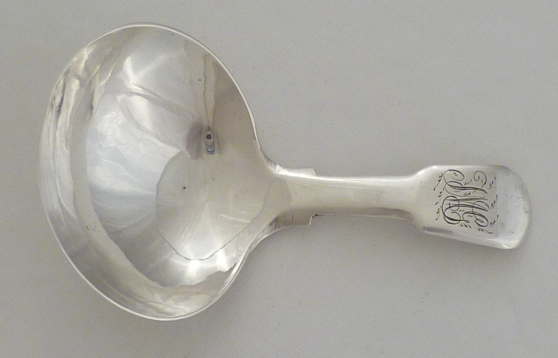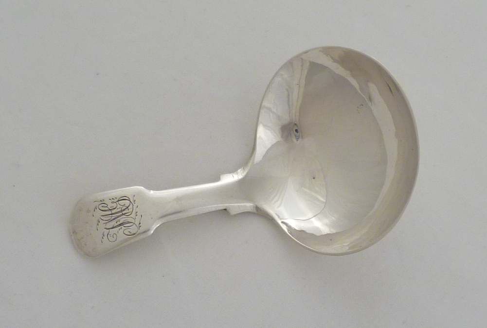 DESCRIPTION | Georgian silver Fiddle pattern caddy spoon with the original monogram engraving and good hallmarks. |