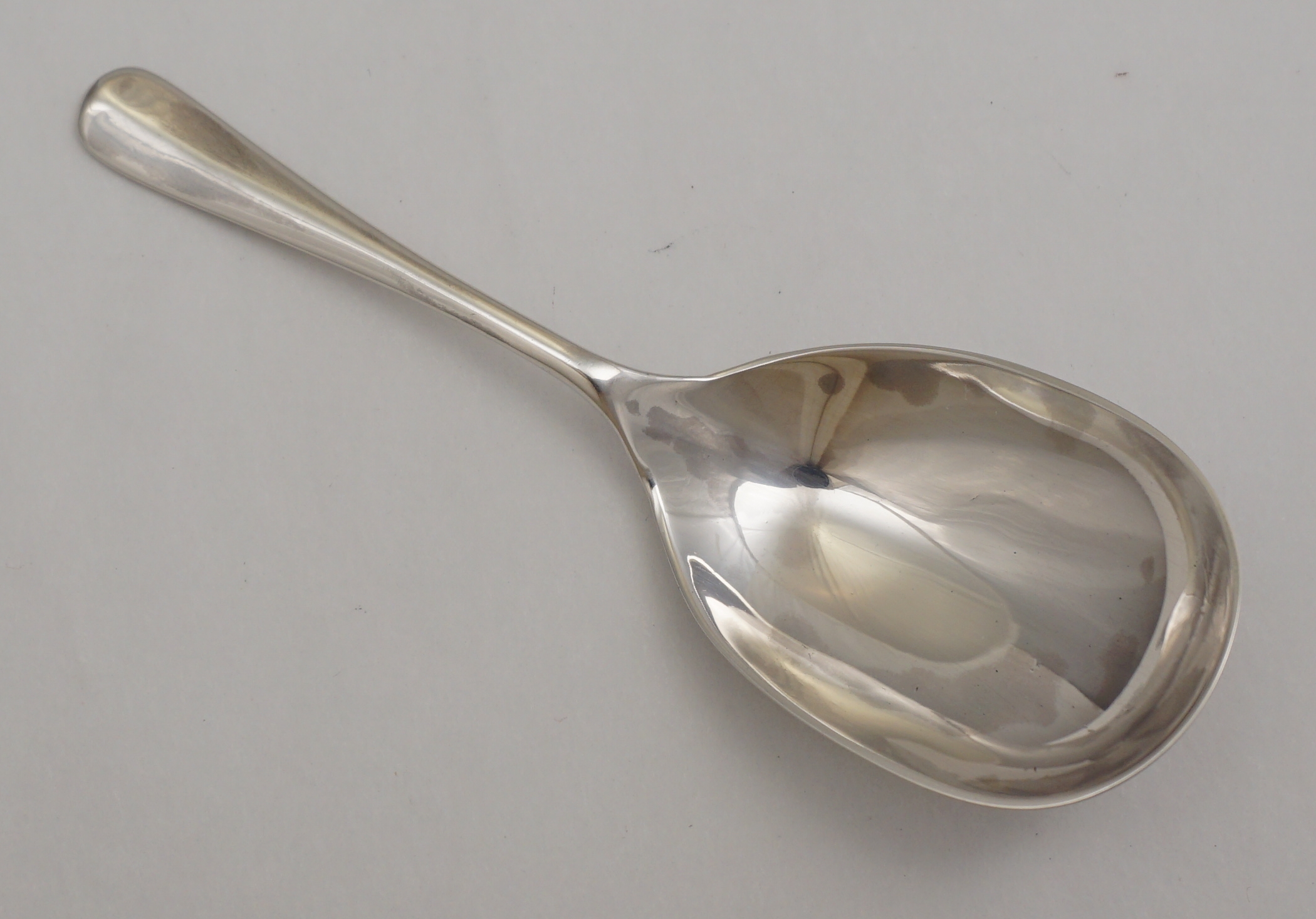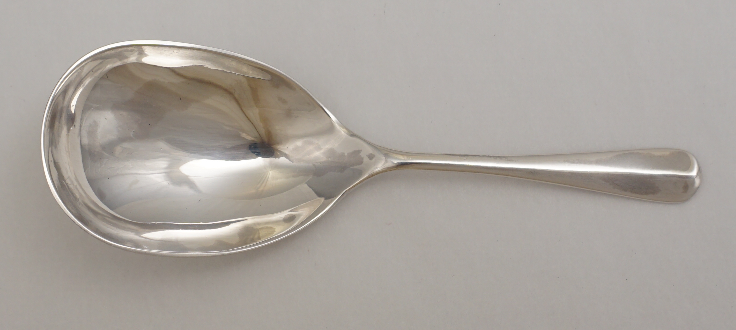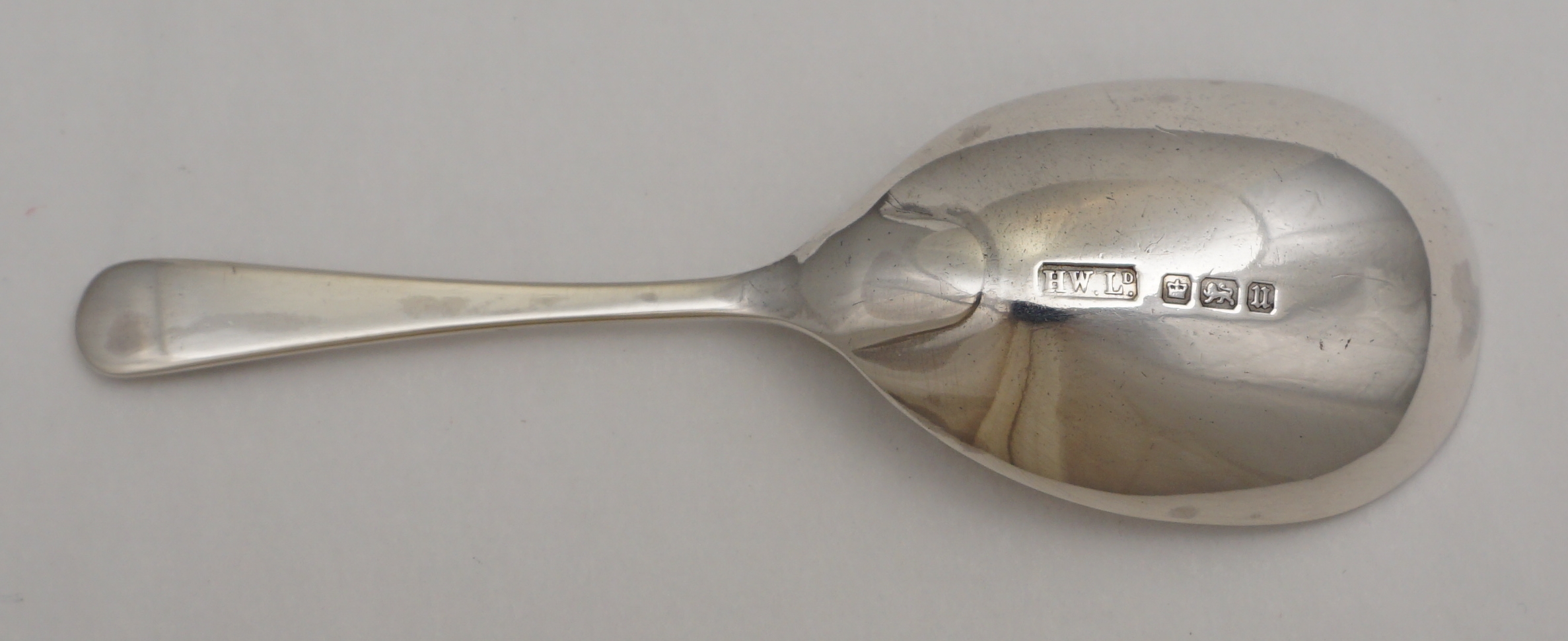 DESCRIPTION | Good vintage English solid sterling silver Hanoverian pattern caddy spoon with no engraving or erasure. |