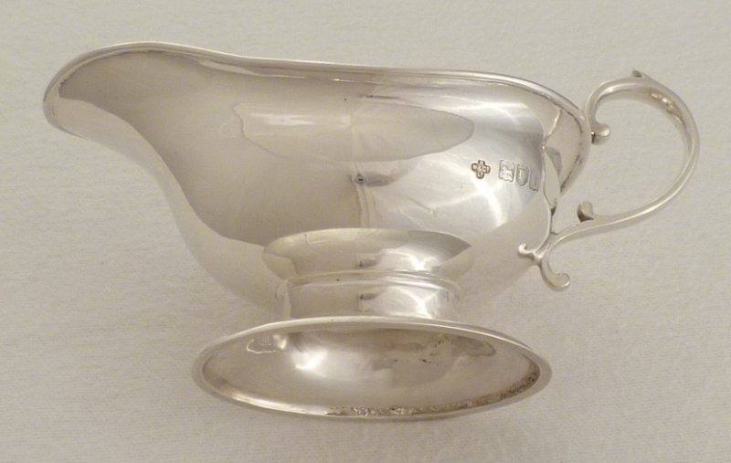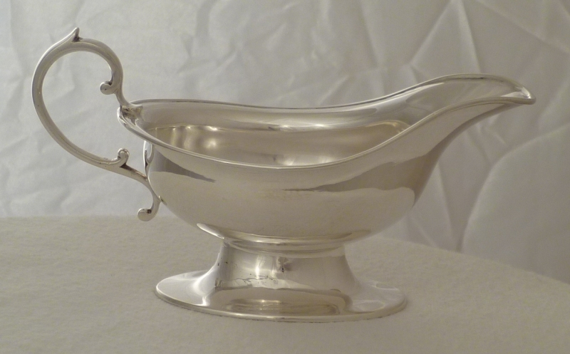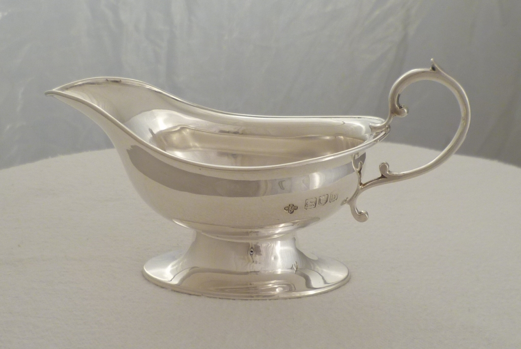 DESCRIPTION | Little Victorian silver sauce or cream boat with an oval pedestal base. Holds three fluid ounces comfortably. |