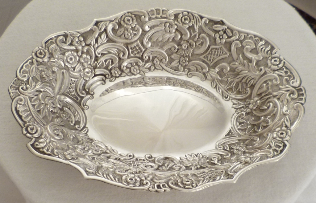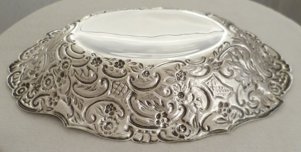 DESCRIPTION | Useful Victorian oval silver dish with embossed decoration. Sometimes this type of dish can be quite thin but this one is nice. |