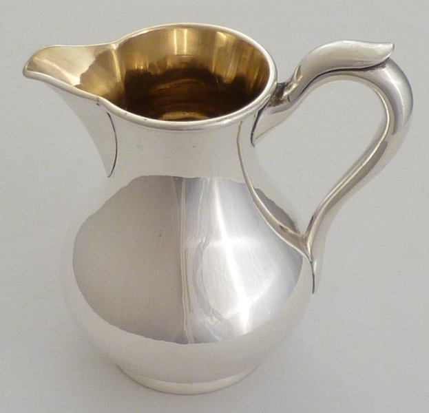DESCRIPTION | Wonderful and stylish little silver cream jug with a gilded interior and flying leaf capped handle. Surprisingly heavy and oozing quality. |