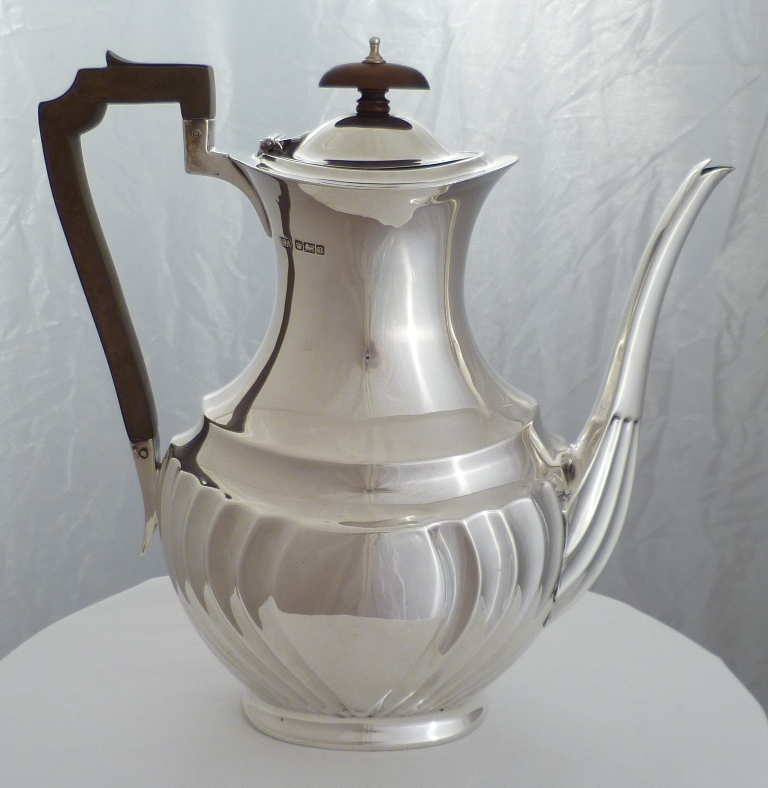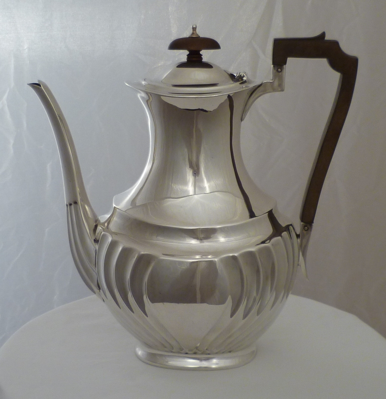 DESCRIPTION | Large Edwardian silver coffee pot with semi fluted decoration. |