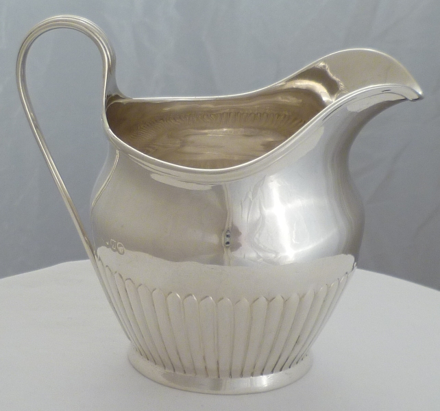 DESCRIPTION | Excellent quality Victorian silver creamer or milk jug with a semi fluted body and thread decorated top rim and loop handle. |