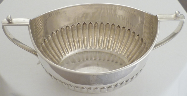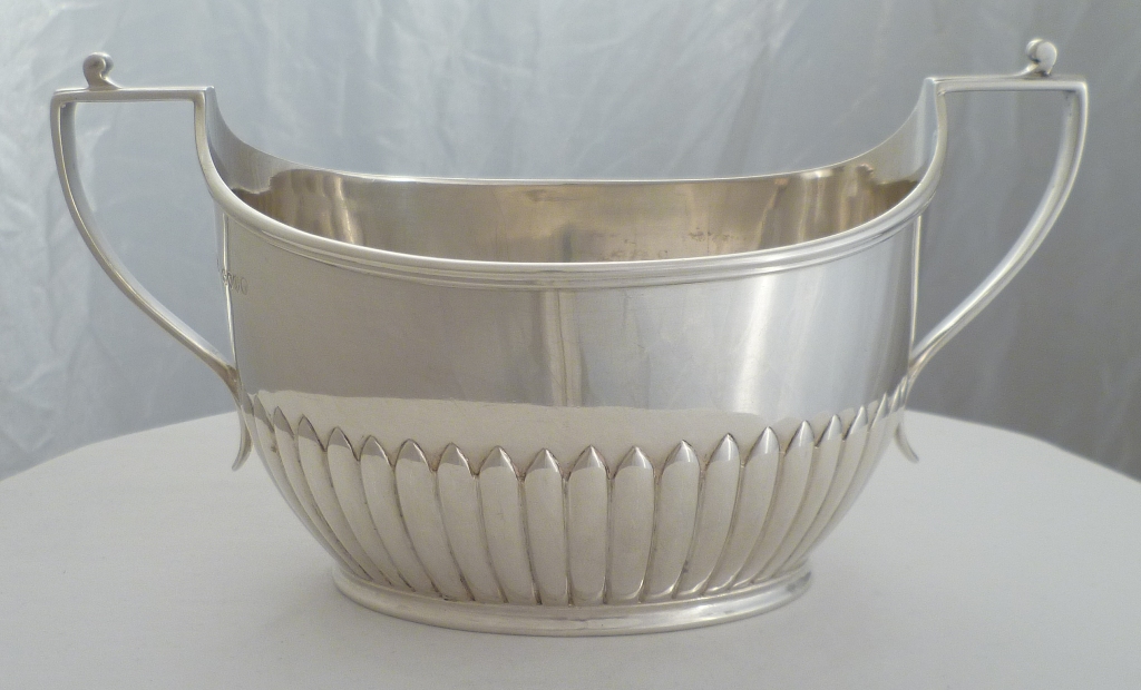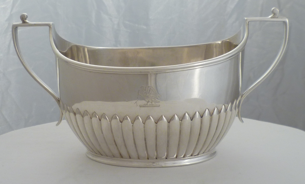 Excellent quality and large Victorian silver two handled sugar basin with a semi fluted body and crest engraving to one side. |