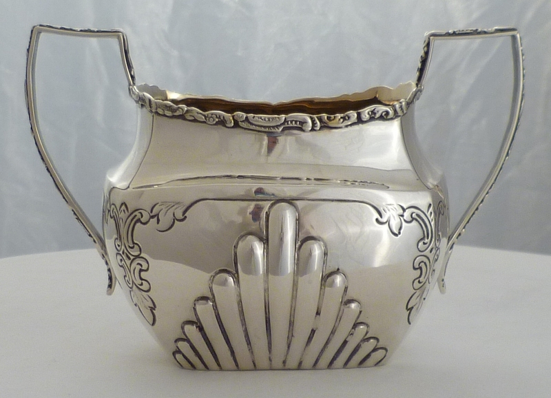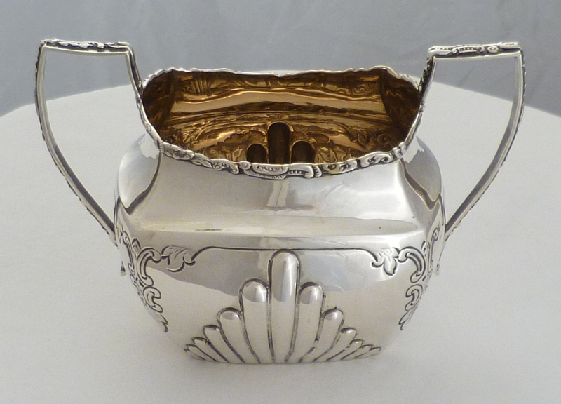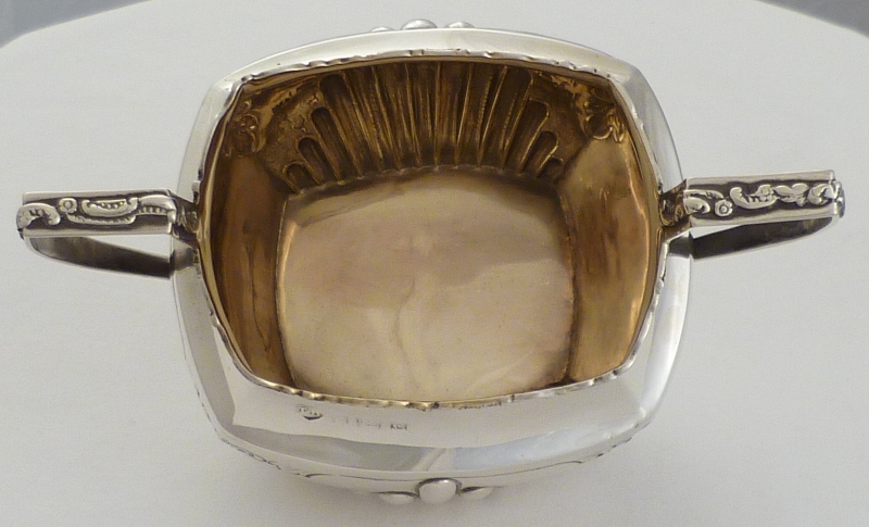 DESCRIPTION | Pretty Edwardian silver sugar bowl with a gilded interior. |