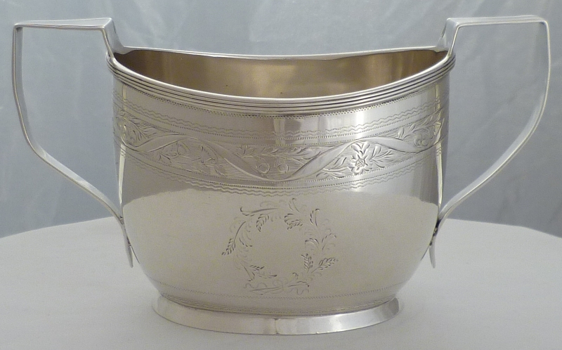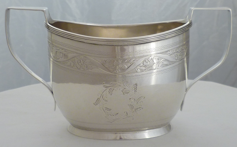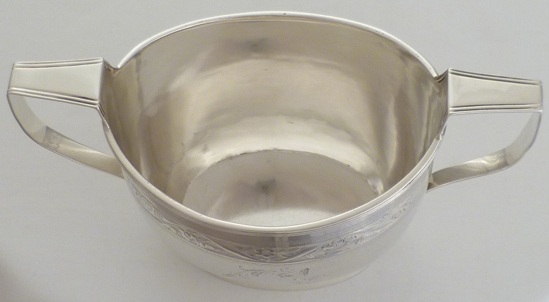 DESCRIPTION | Fine quality Edwardian silver two handled sugar bowl with engraved decoration. |