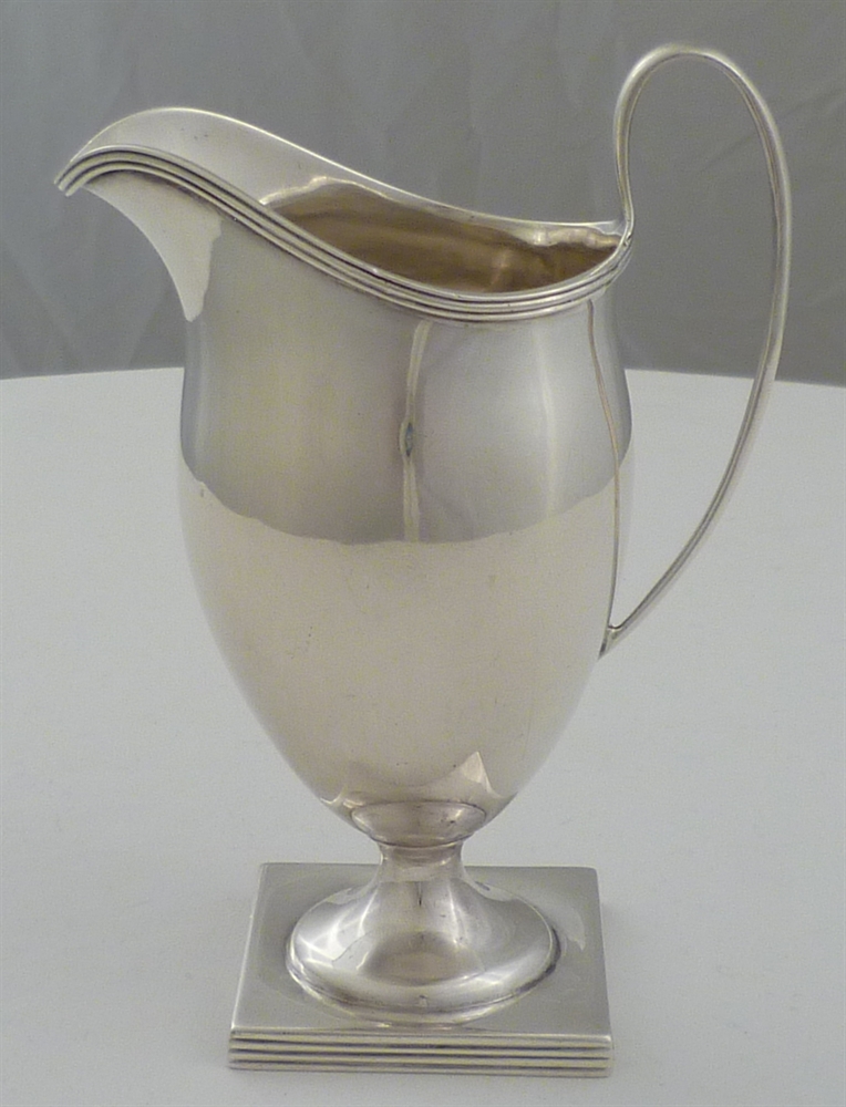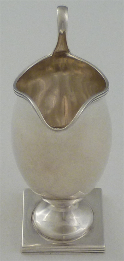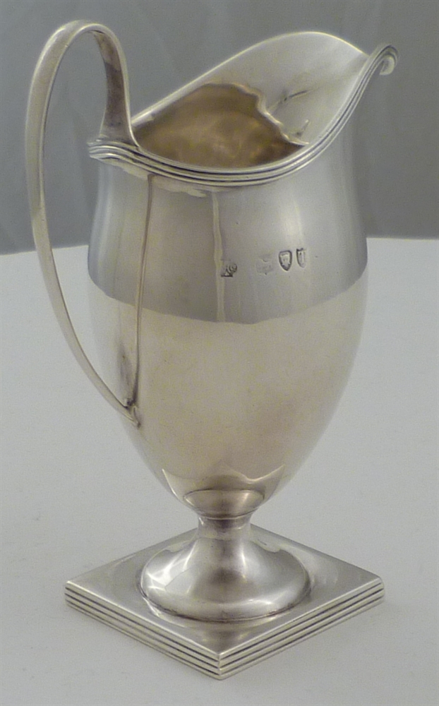 DESCRIPTION | Victorian silver helmet shaped cream jug on a thread decorated pedestal foot. |