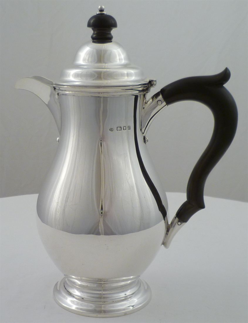 DESCRIPTION | High quality solid silver baluster shaped hot water pot. Holds 700ml or 24 fluid ounces. |