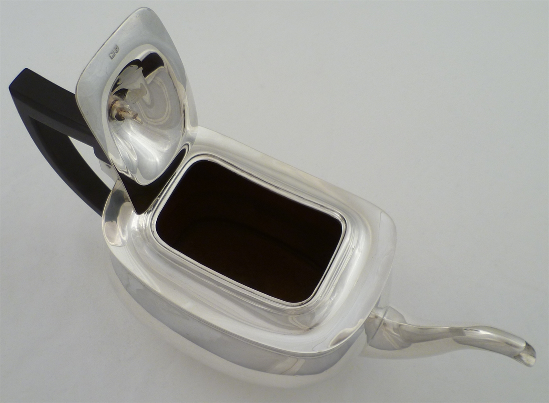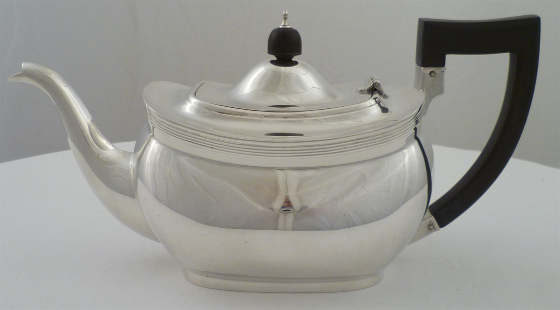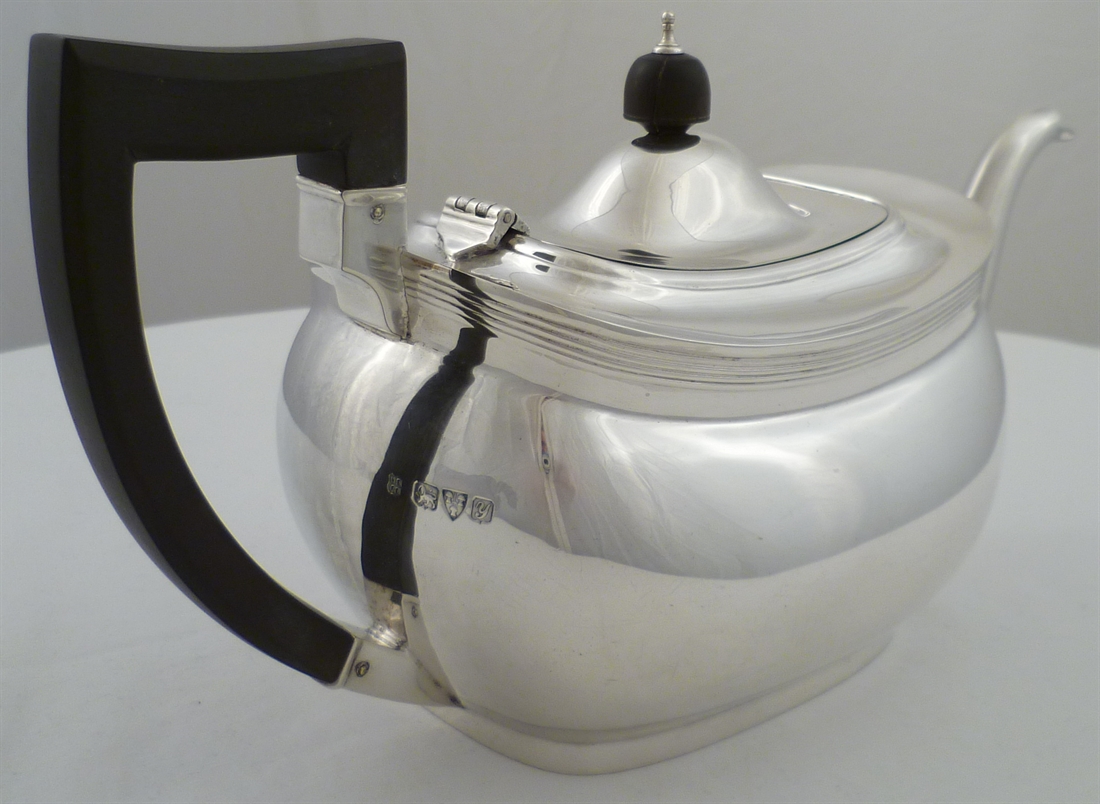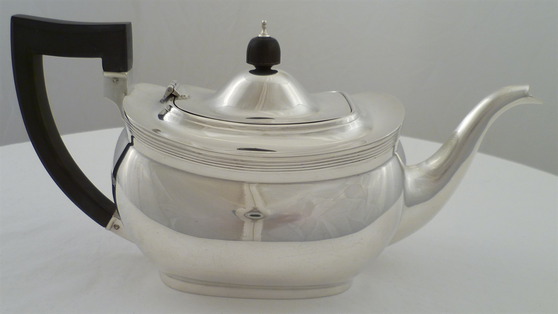 DESCRIPTION | Solid silver tea pot. Holds 1140ml or 40 fluid ounces. I have left the tanned interior as many believe this greatly improves the flavour and takes years to reach this level. |