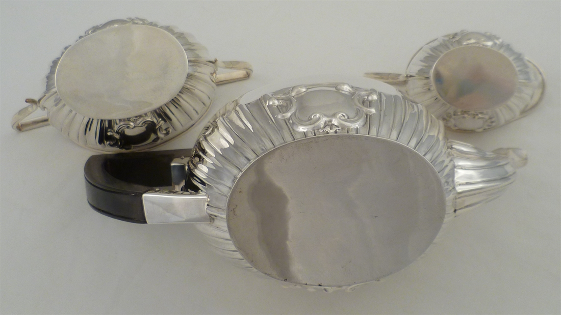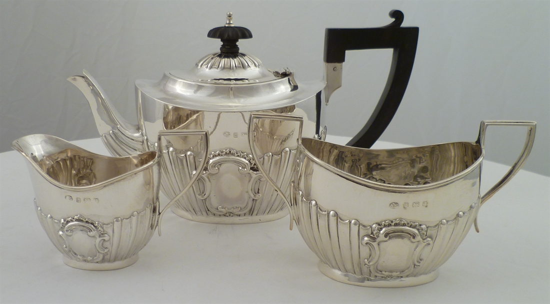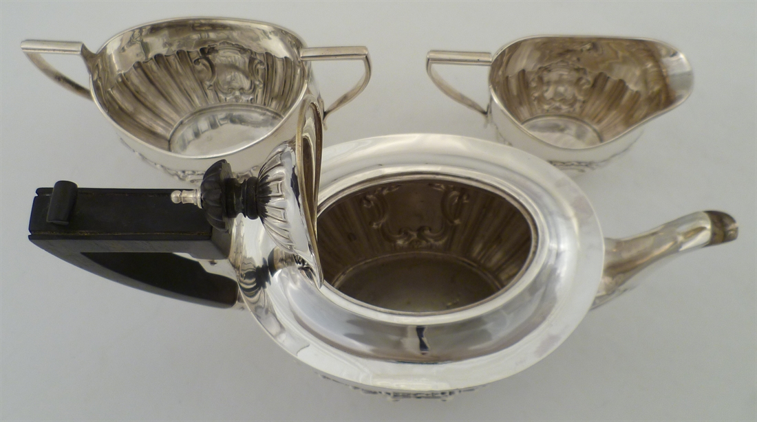 DESCRIPTION | Pretty little Edwardian solid silver three piece tea set. Great pourer, holds one pint three fluid ounces or 650ml. |