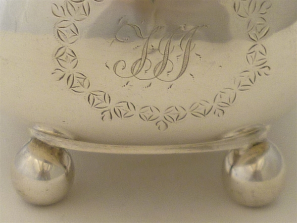 CONDITION | couple of micro bumps, small impression of bottom handle joint within bowl, erasure beneath monogram engraving leaving cartouche thin in places |